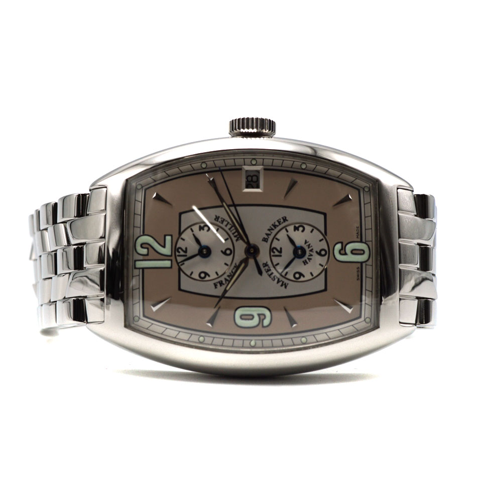 「マスターバンカーは、フランクミュラーが「世界の金融市場の時刻が瞬時に分かる時計を作って欲しい」という依頼を受け、2年の歳月をかけて製作した時計です。