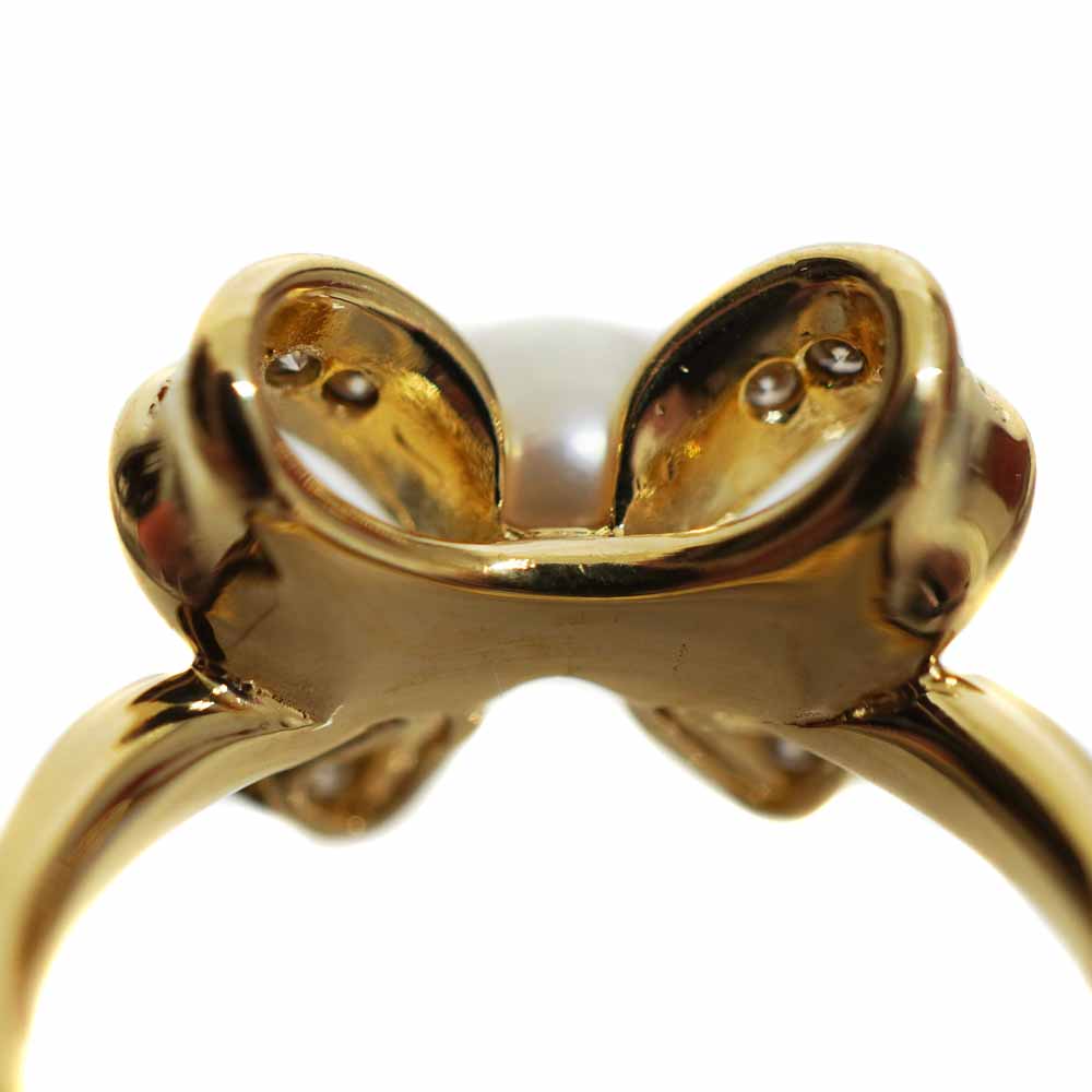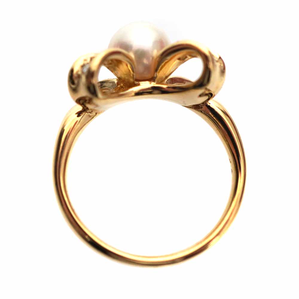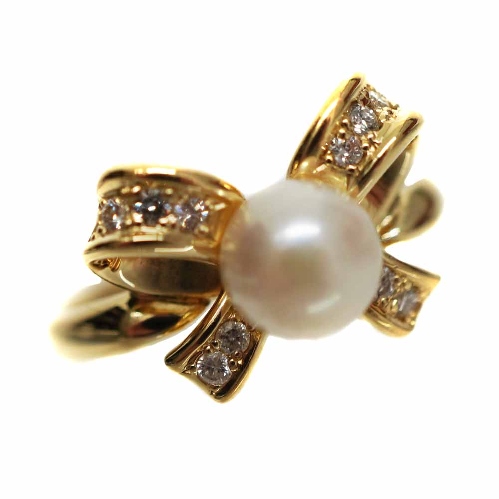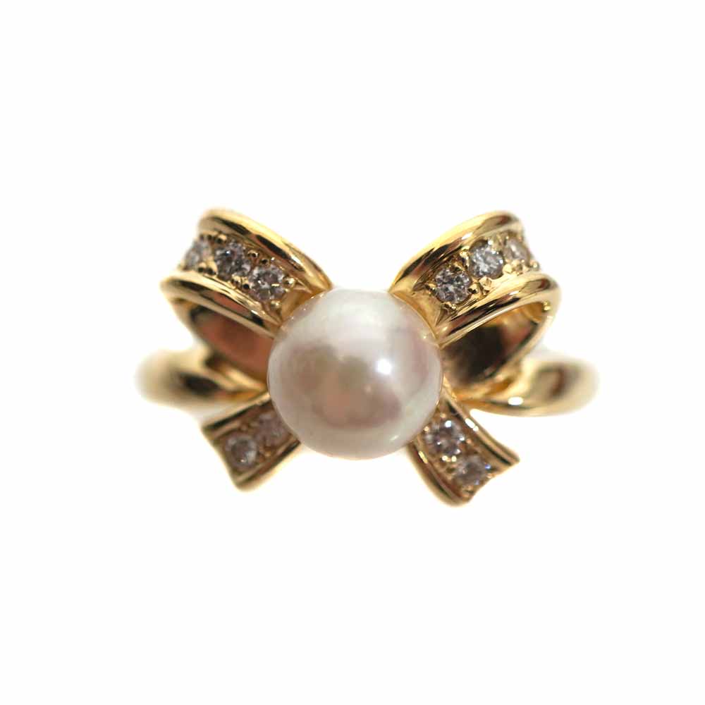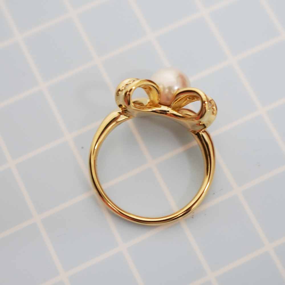 大粒のパールが美しい、華やかなリングです。 リボンデザインで、可愛らしく手元を彩ってくれるアイテムです。