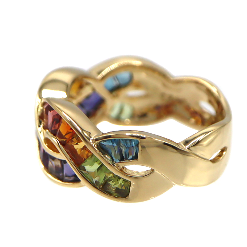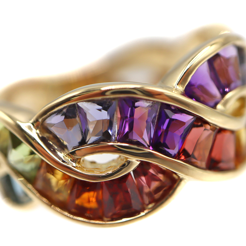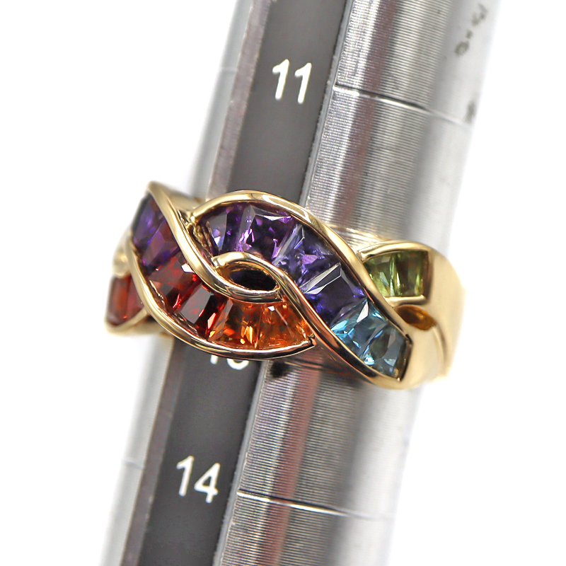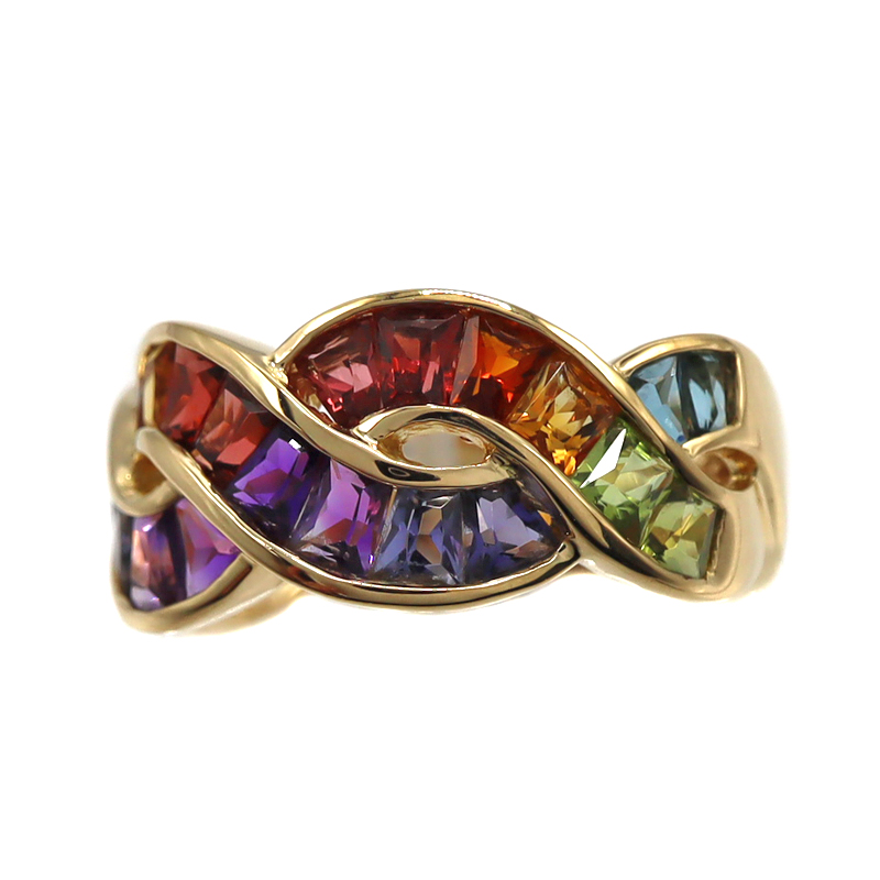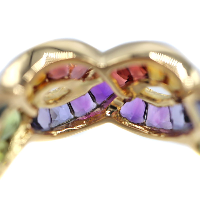 様々なカラーの石が美しいグラデーションを描くリングです。