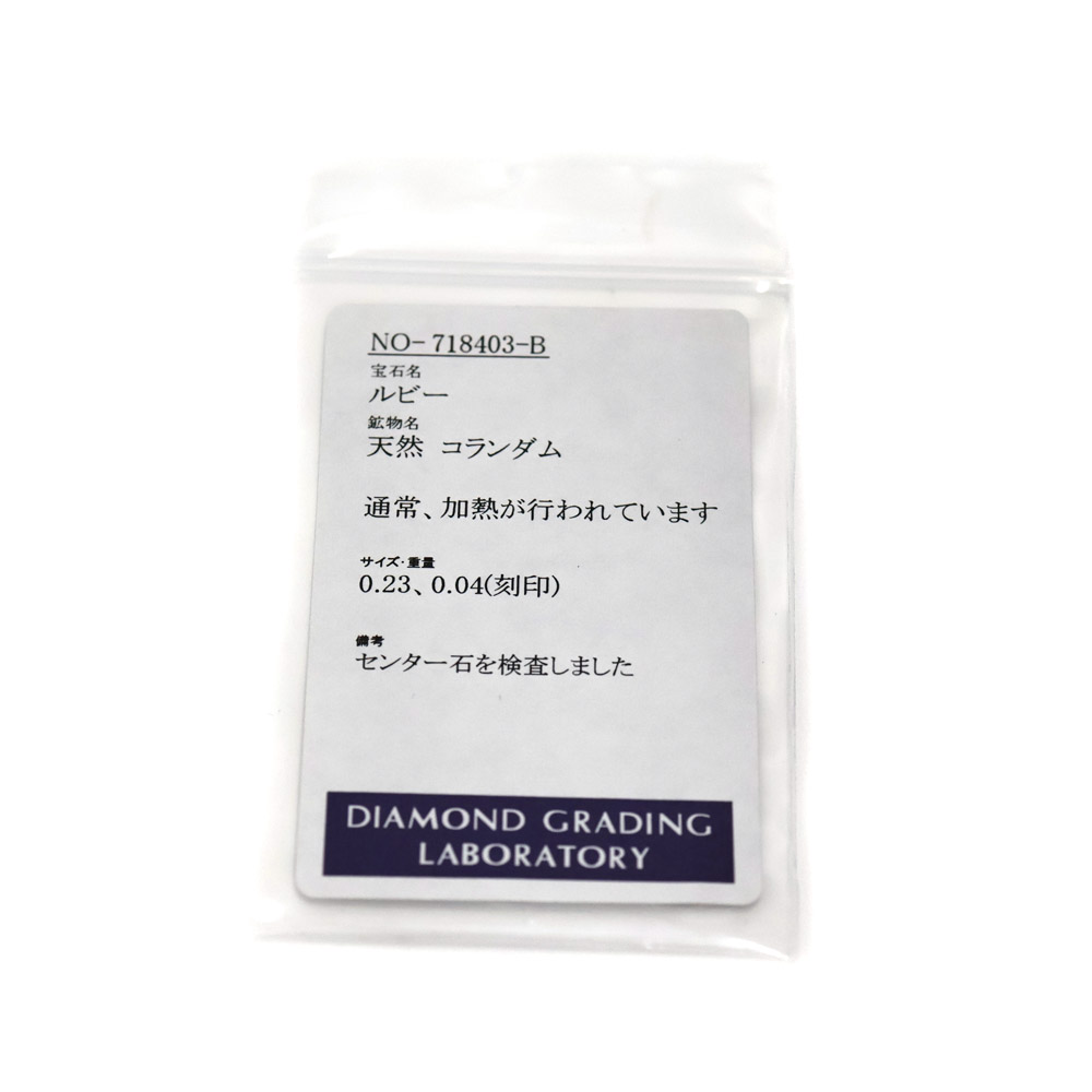 | 素材 | K18【18金】 ルビー:0.23ct ダイヤモンド:0.04ct |
