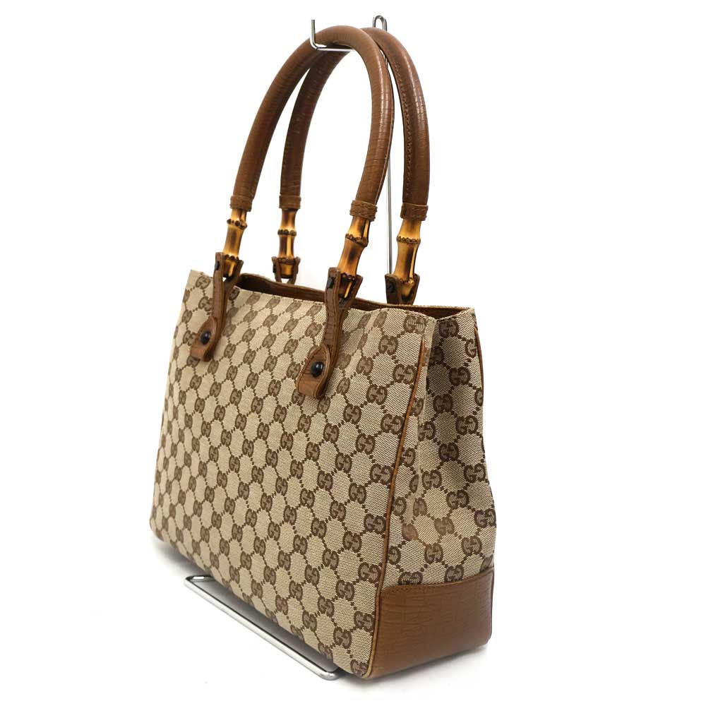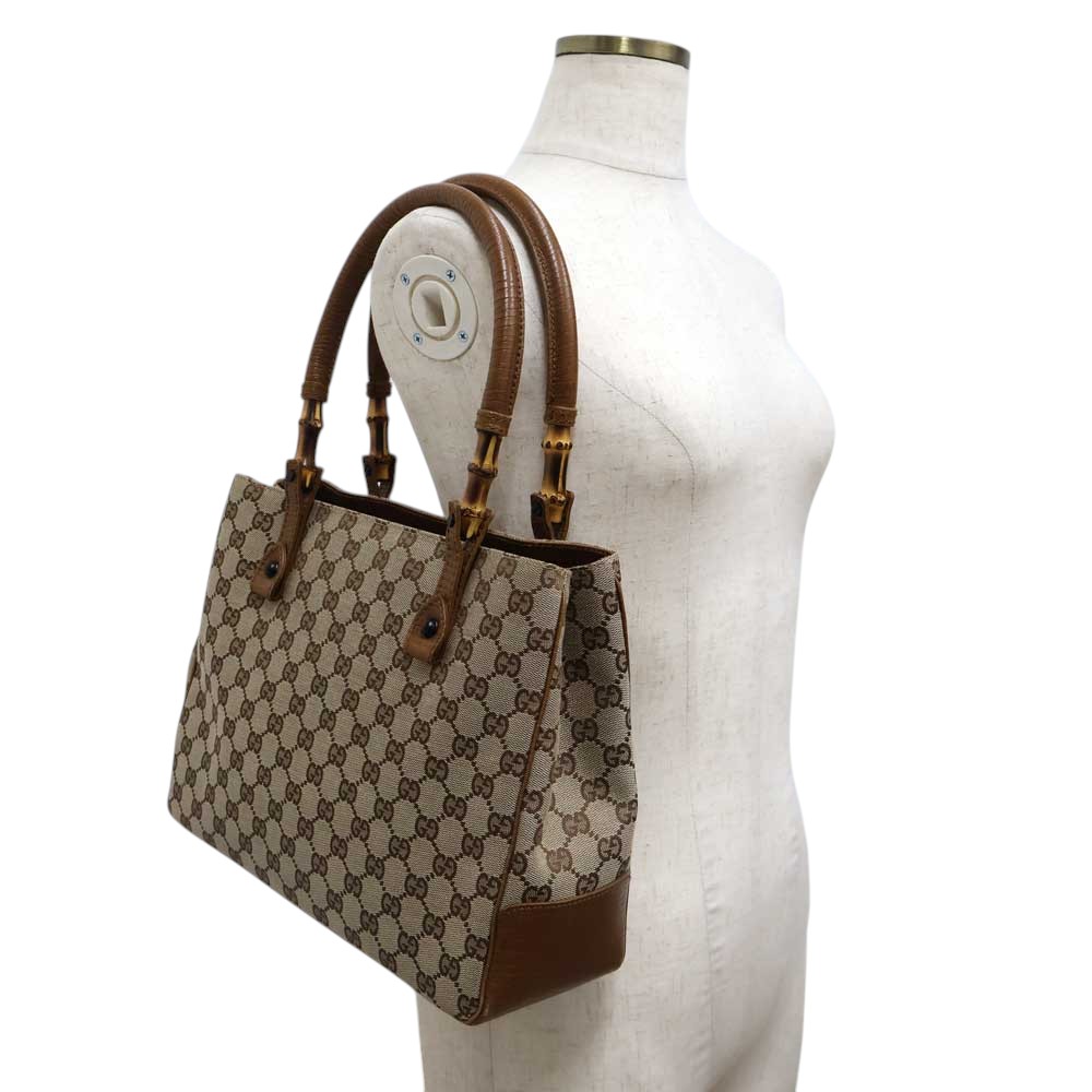 こちらのバッグは、ブランドを象徴するバンブーモチーフを取り入れた、クラシカルな雰囲気が魅力のトートバッグです。バンブーハンドルがデザインのアクセントとなり、上品さと独特の存在感を兼ね備えています。 内側にはポケットを備え、財布やスマートフォンなどの必需品を整理して収納可能です。軽量でデイリーユースに適した使い勝手の良いモデルとなっております。 ぜひいかがでしょうか。