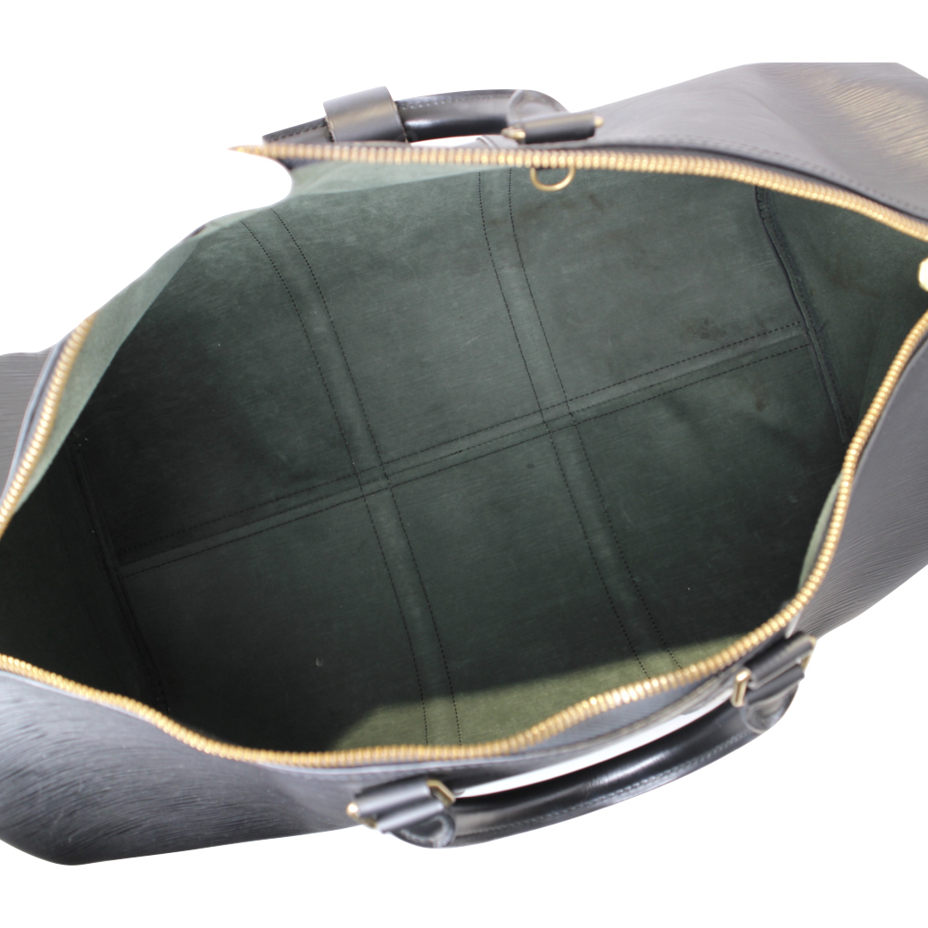 | 商品説明 | ルイヴィトンの定番旅行バッグ「キーポル50(M42962)」のエピレザーモデルです。 上質なエピレザーを使用した高級感あふれるデザインで、シンプルながらも洗練された印象を与えるボストンバッグ。耐久性に優れた素材のため、旅行や出張、ジムバッグとしても安心してお使いいただけます。 カラーは定番のノワール(ブラック)で、シーンやスタイルを問わず合わせやすい万能カラー。ゴールド金具との組み合わせが上品さを引き立てます。 開閉はダブルファスナー仕様で大きく開き、荷物の出し入れもスムーズ。2〜3泊程度の荷物がしっかり収納できるサイズ感で、実用性にも優れています。