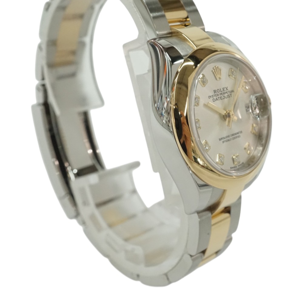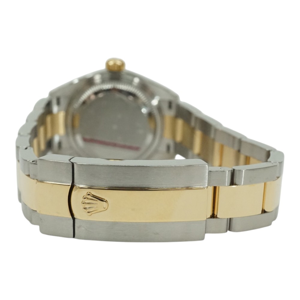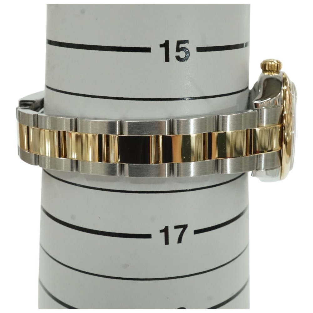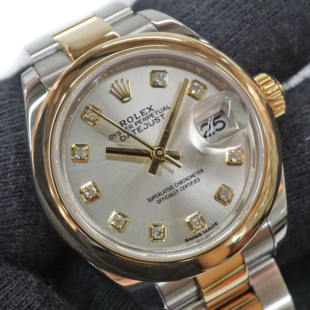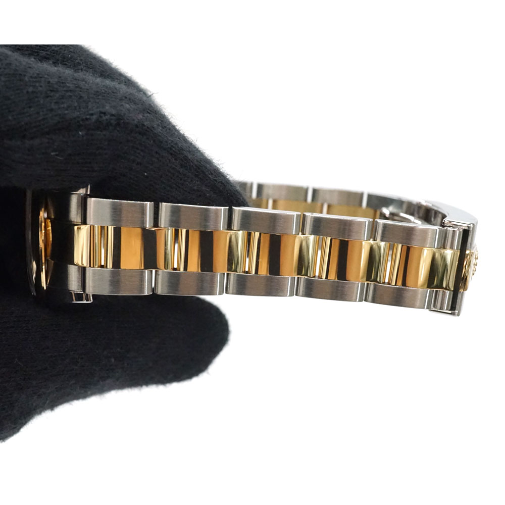 こちらはシャンパン文字盤に10ポイントのダイヤモンドをセッティングした華やかなモデルで、ブレスレットにはオイスターブレスを合わせてカジュアル感も演出しています。