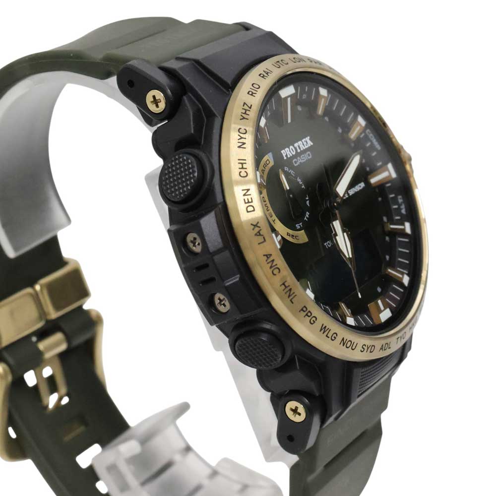 トリプルセンサー(方位・気圧/高度・温度)を搭載し、アウトドアシーンで活躍する本格仕様。 さらにタフソーラーや電波受信機能により、日常使いでも利便性の高いモデルとなっております。