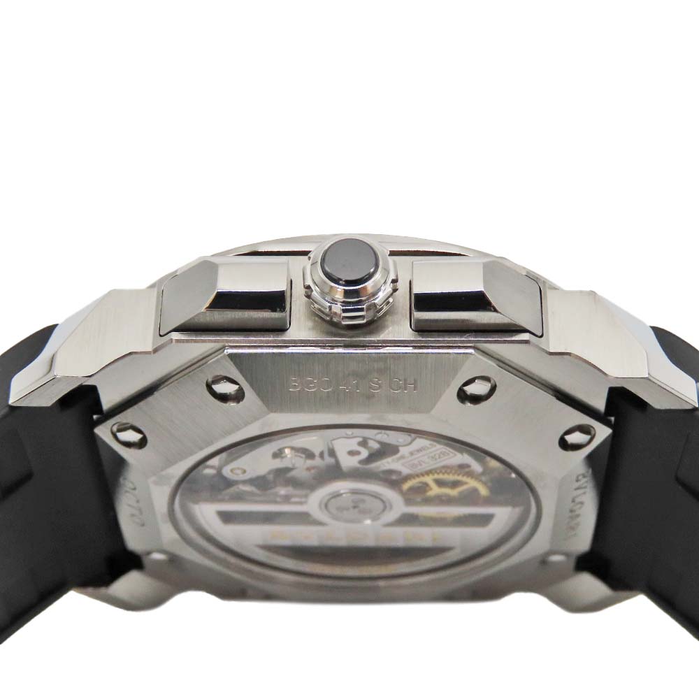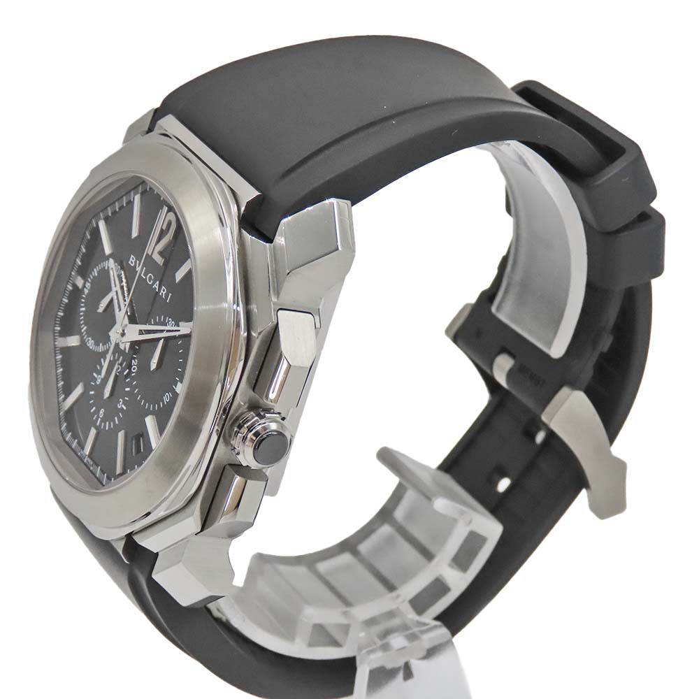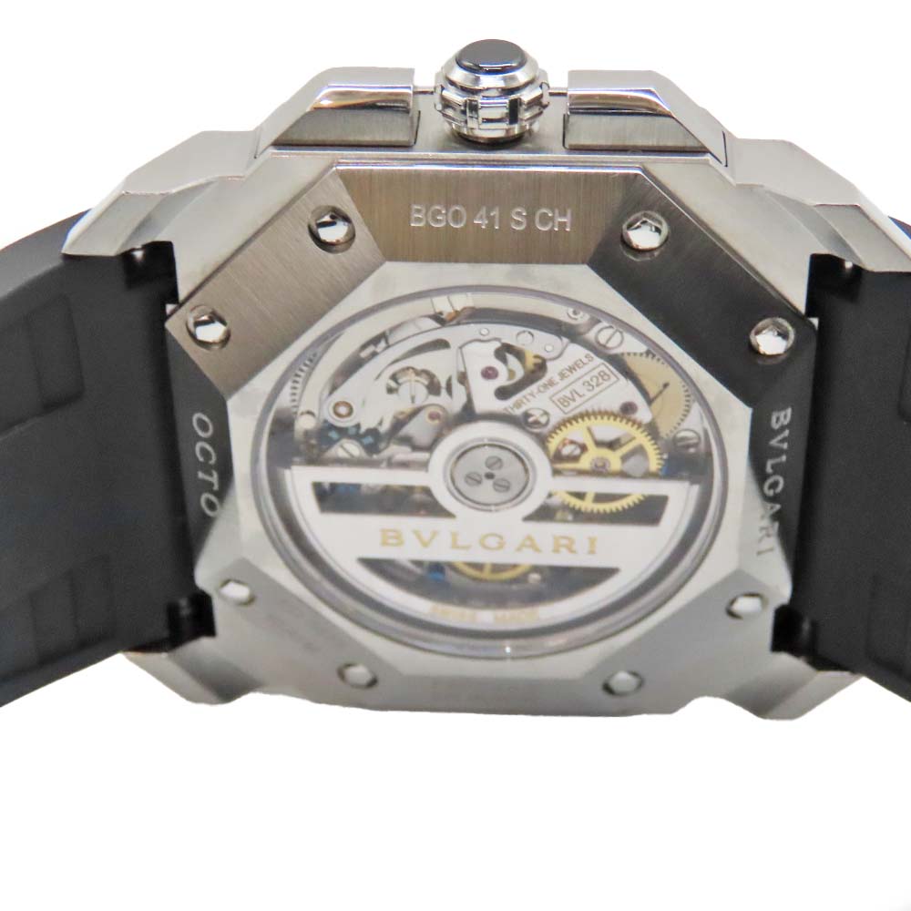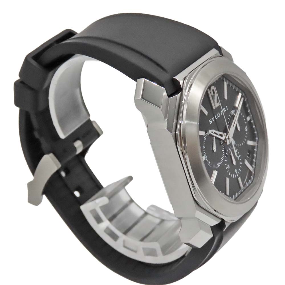 | 商品説明 | 36,000振動のハイビートを宿すブルガリ「オクト ヴェロチッシモ」。搭載ムーブメント BVL328 は、名機エル・プリメロをベースにブルガリが再設計した特別仕様で、シリコン脱進機による高効率と約50時間のパワーリザーブを実現。八角形と円を重ねた建築的ケースは110以上の面で構成され、光の反射が美しく変化します。タキメーターベゼル、コラムホイール式クロノ、シースルーバックなど、機能と美の両立も魅力。現在は生産終了となり、ハイビート×オクトの組み合わせは今では手に入らない希少仕様です。