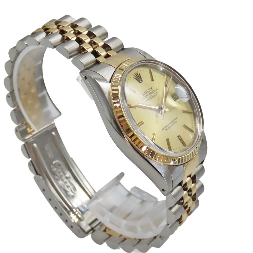 | 商品説明 | ロレックス「デイトジャスト 16013」は、ステンレスと18Kイエローゴールドを組み合わせたロレゾール仕様の36mmモデル。ムーブメントには、日付の早送り機能を初めて搭載したCal.3035を採用し、28,800振動のハイビートによる安定した精度が魅力です。風防は現行にはない強化アクリル製で、柔らかい光のにじみがヴィンテージならではの雰囲気を演出します。フルーテッドベゼルとジュビリーブレスが上品さを引き立て、ビジネスからカジュアルまで幅広く活躍。1980年代ロレックスの魅力が詰まった一本で、現行モデルにはない味わいを求める方に特におすすめです。
