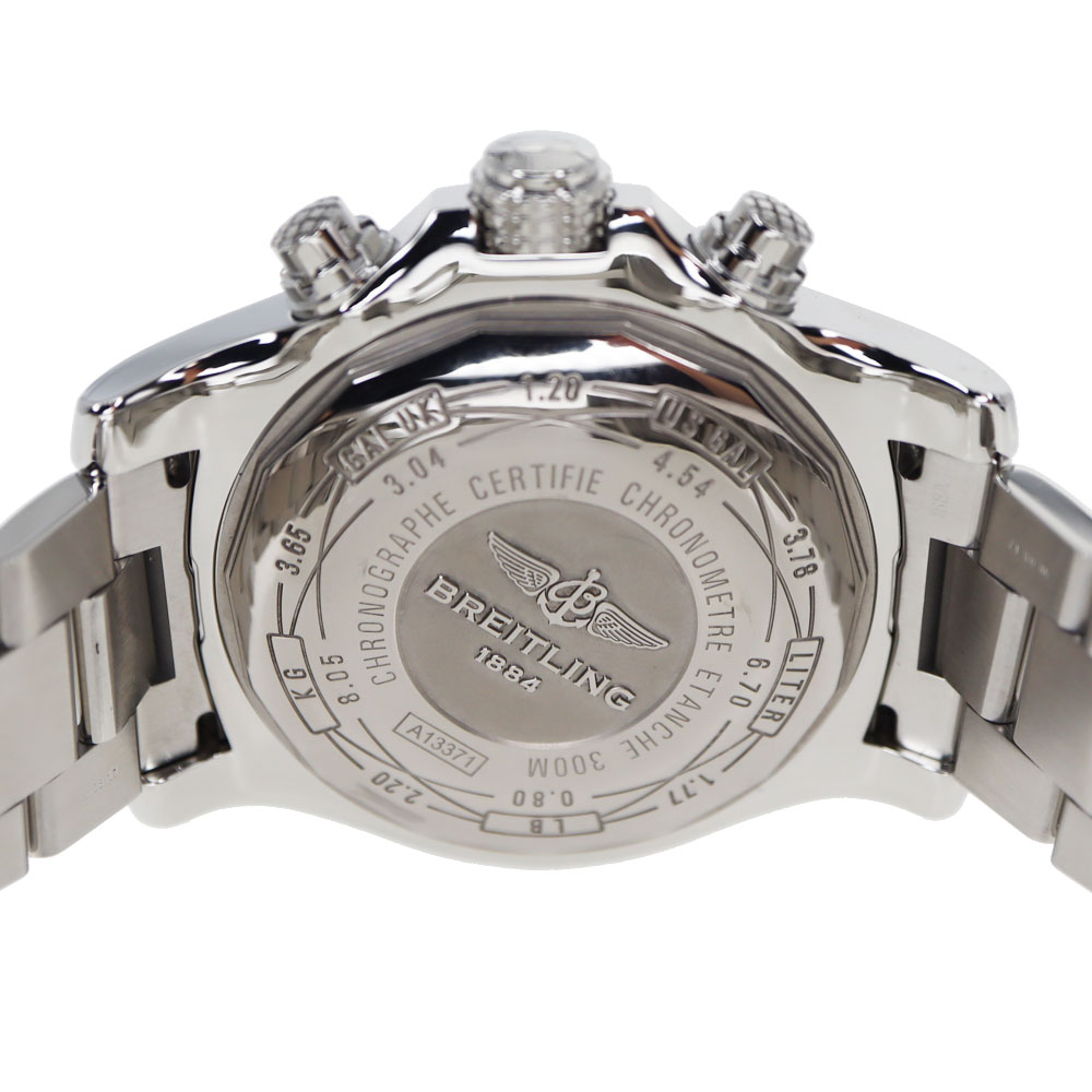 | 仕様 | 自動巻き ムーブメント:ブライトリング13 パワーリザーブ:約48時間 精度:+3~+6秒/日 300m防水 逆回転防止ベゼル クロノグラフ カレンダー |