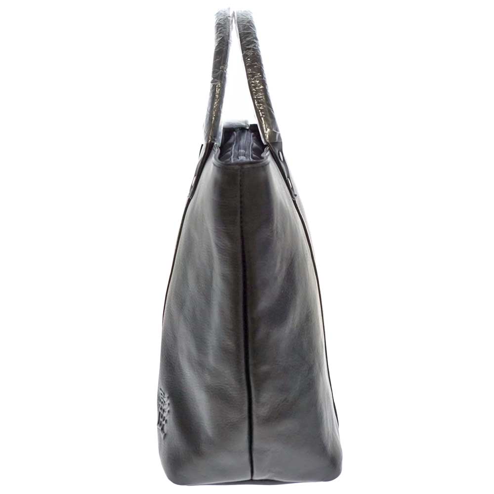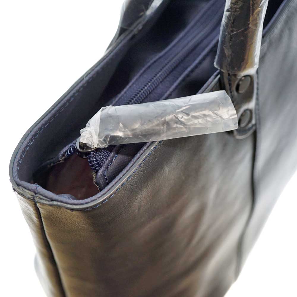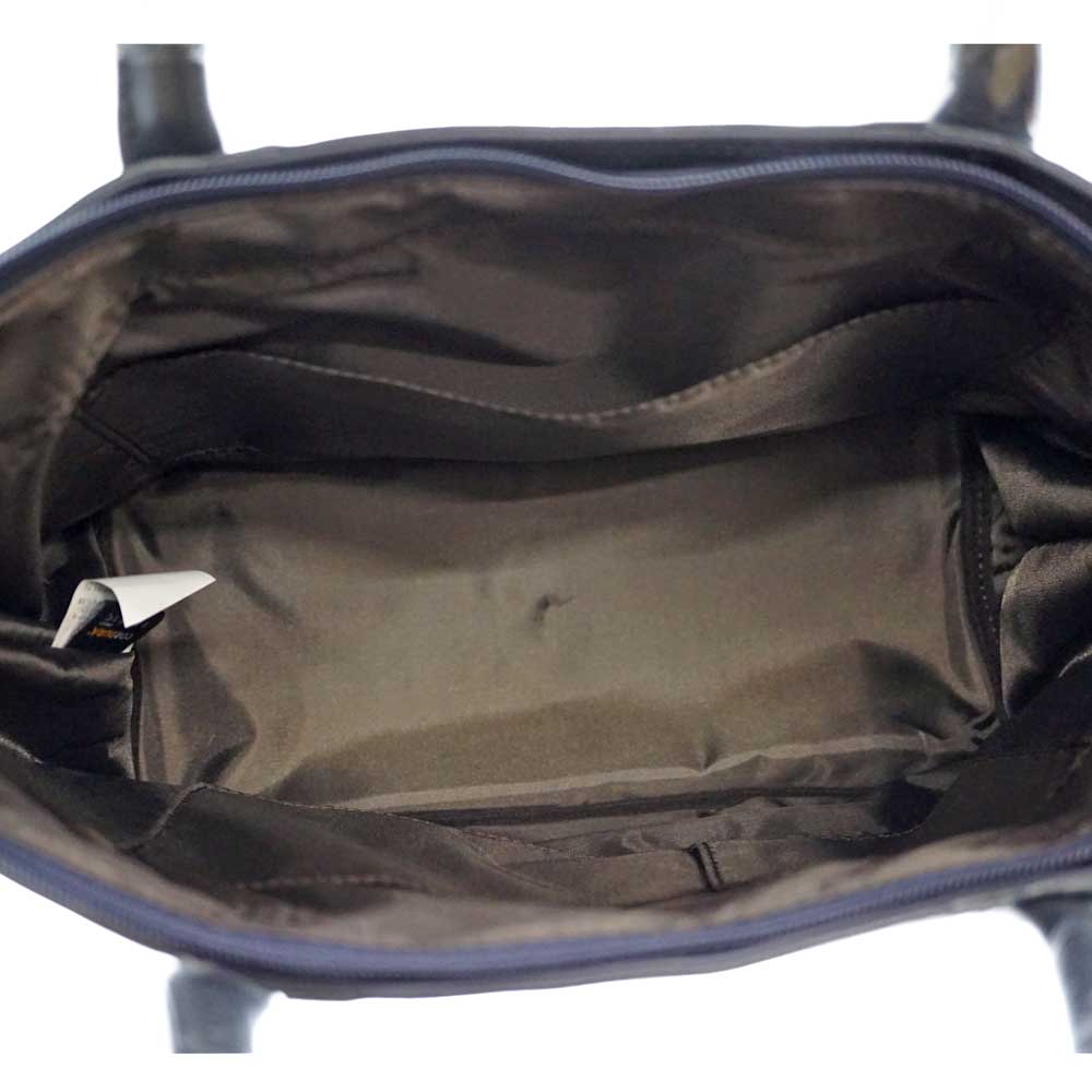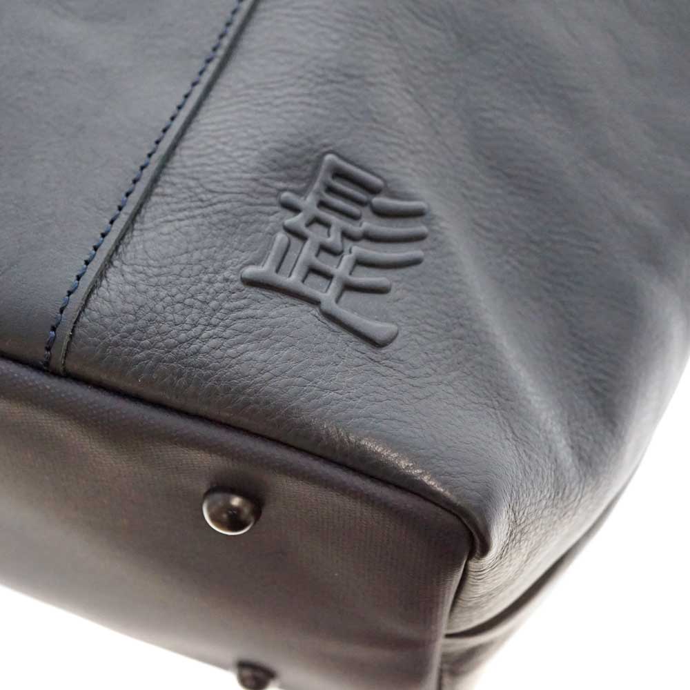 黒に近いダークネイビーカラーのハンドバッグです。 髭のエンボス加工がワンポイントになっています。 A4サイズも収納でき、ビジネスバッグとしてもおすすめです。