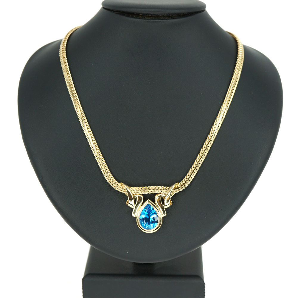 | 商品説明 | K18製のブルートパーズ9.70ct付ネックレス が入荷致しました。