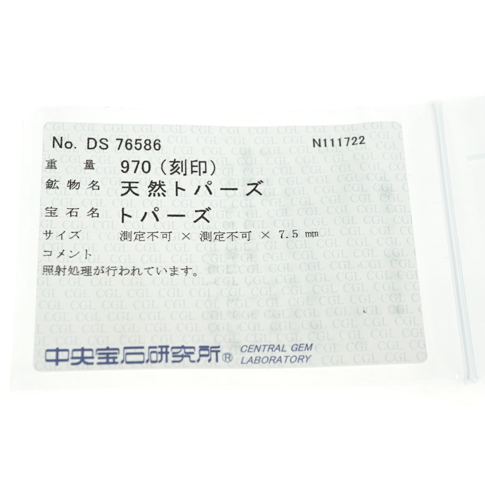 | 重さ | 約:35.6g ブルートパーズ:9.70ct |
