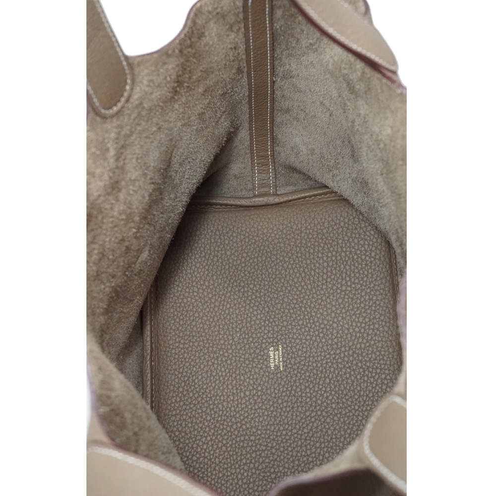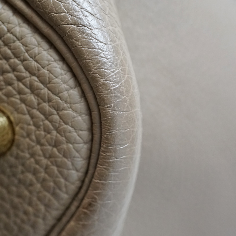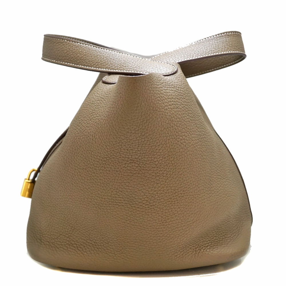 ピコタンの中で人気のサイズです。 コロンとした可愛らしい人気のバッグ。 大きく開き収納もしやすく使い勝手の良いお鞄です。 カラーは人気のエトゥープ×ゴールド金具です。 この機会に是非いかがでしょうか。