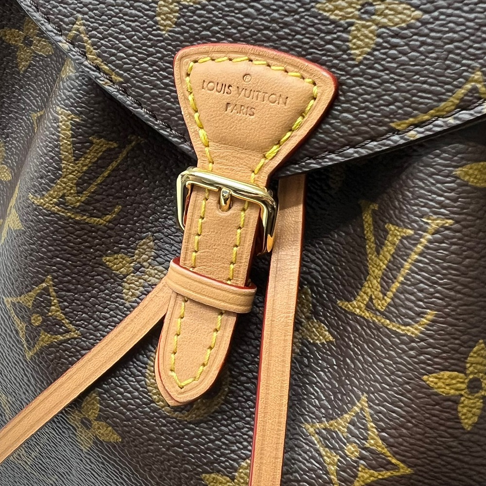 人気定番のモノグラム柄が印象的なコンパクトサイズのバックパックです。 小振りなサイズ感ですが、折り財布やスマホなど必要最低限の荷物は入るので、身軽に動きたい時に便利です。