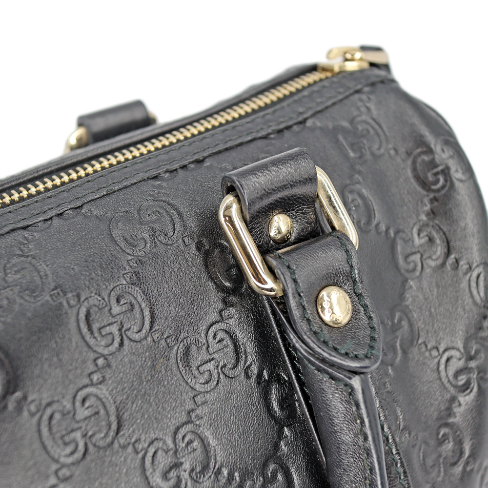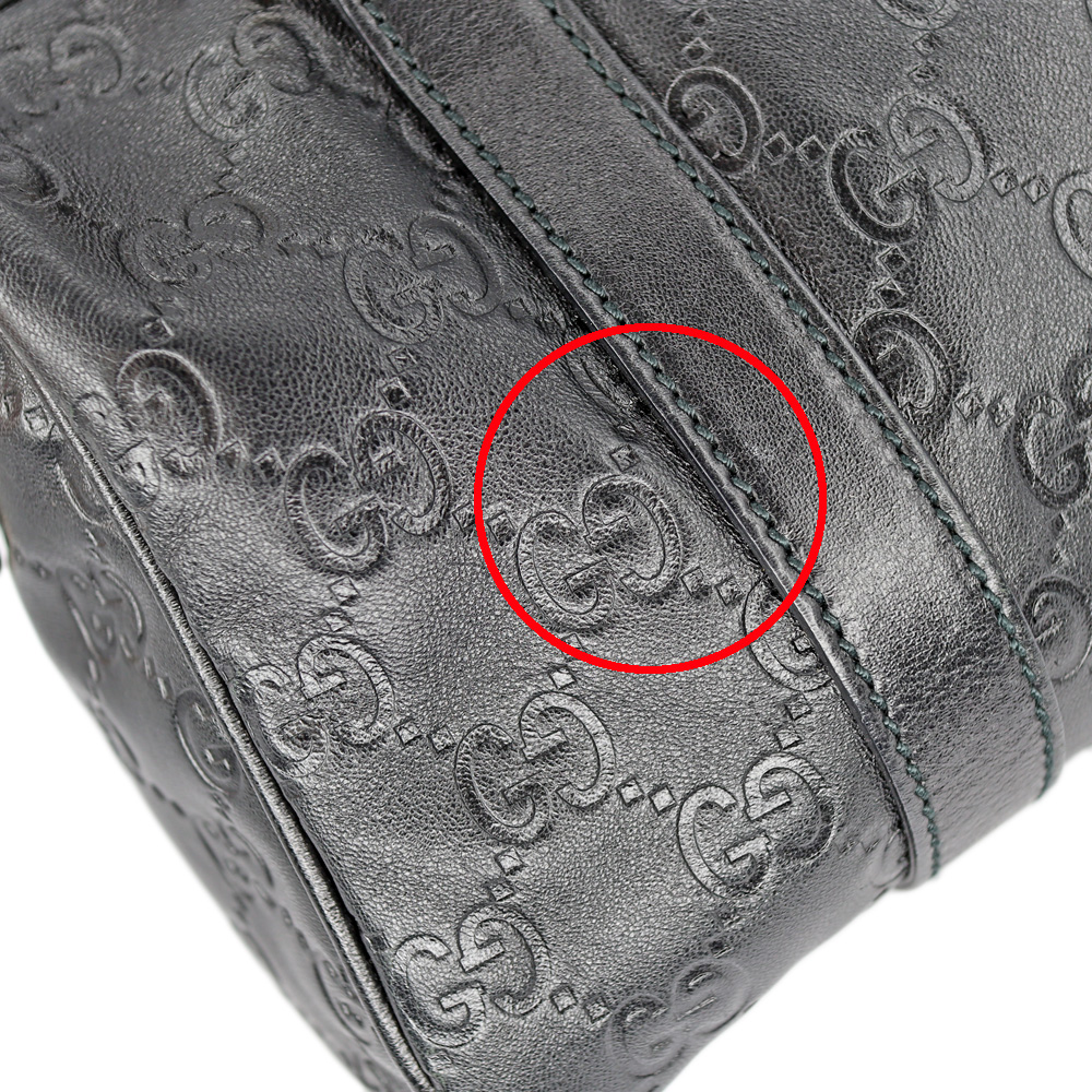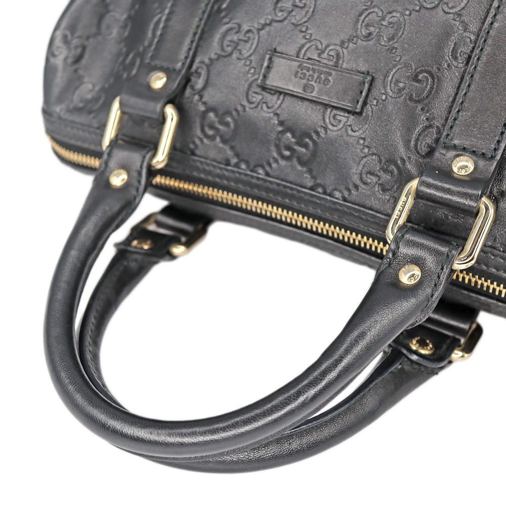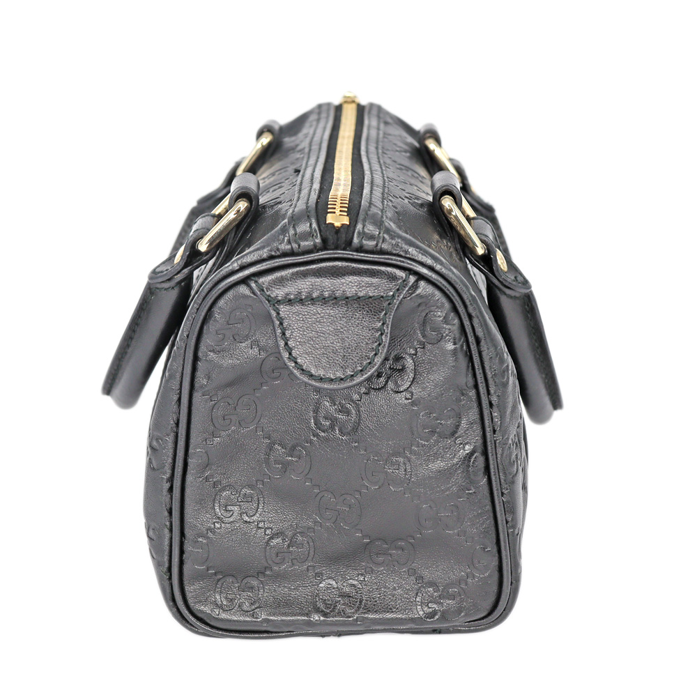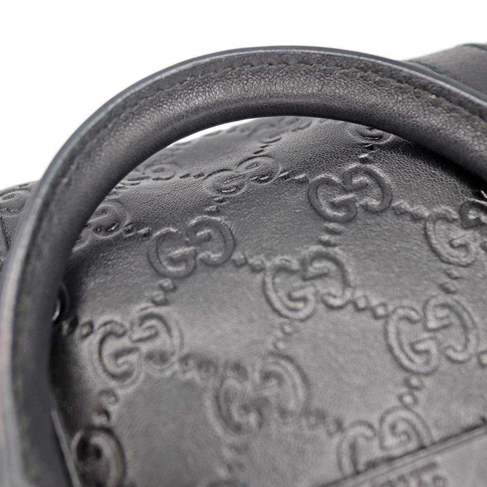 レザーにGG柄がエンボス加工されたミニボストンです。 小さめのハンドバッグですので普段使いにぴったりなお品。
