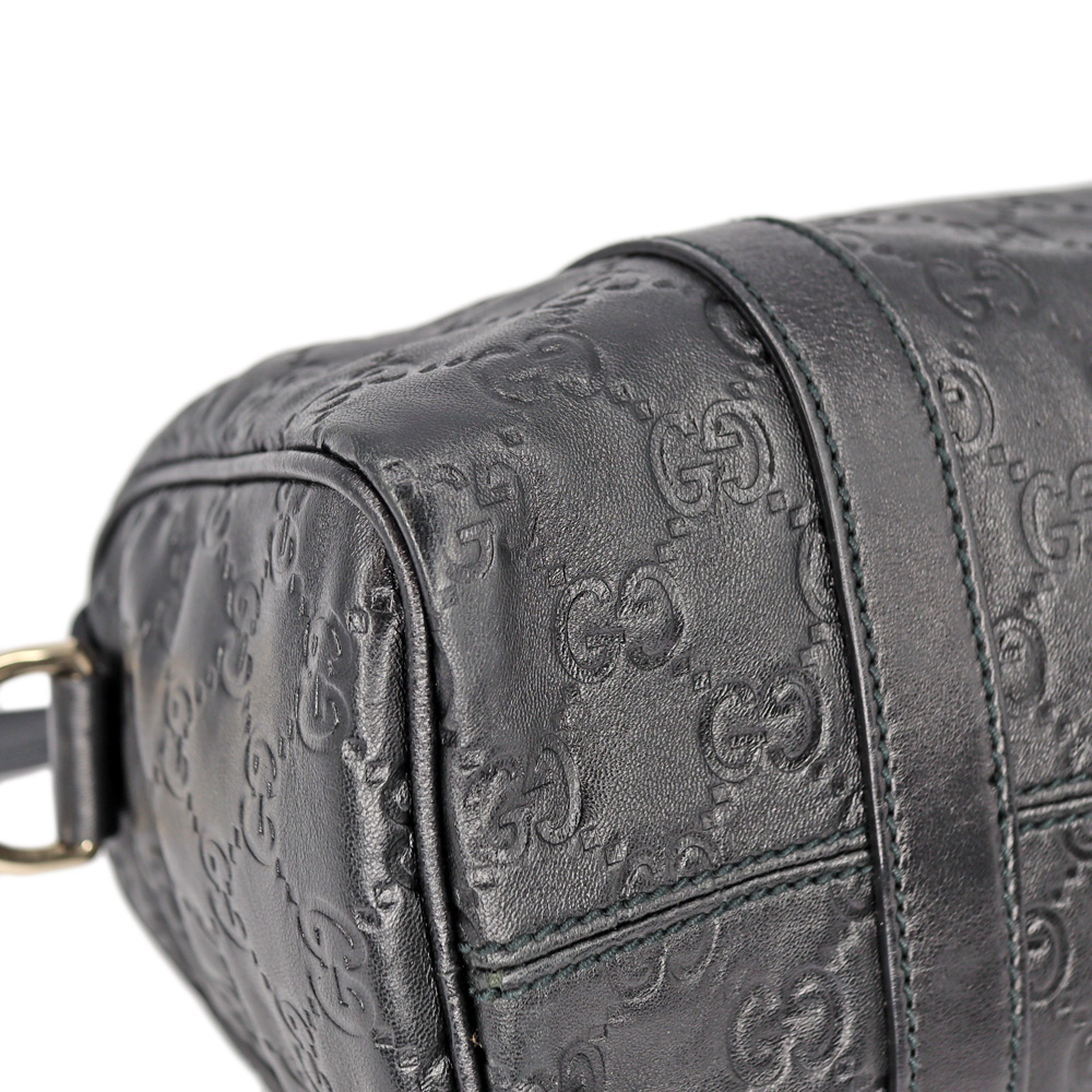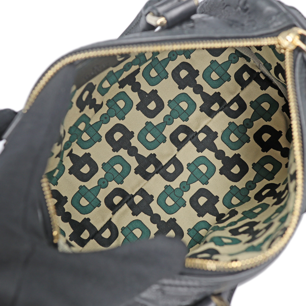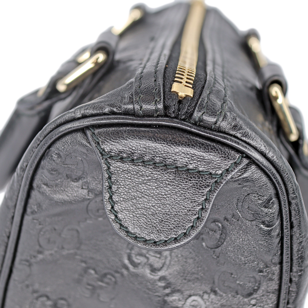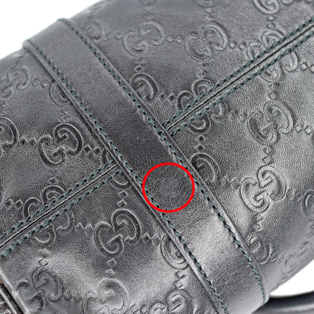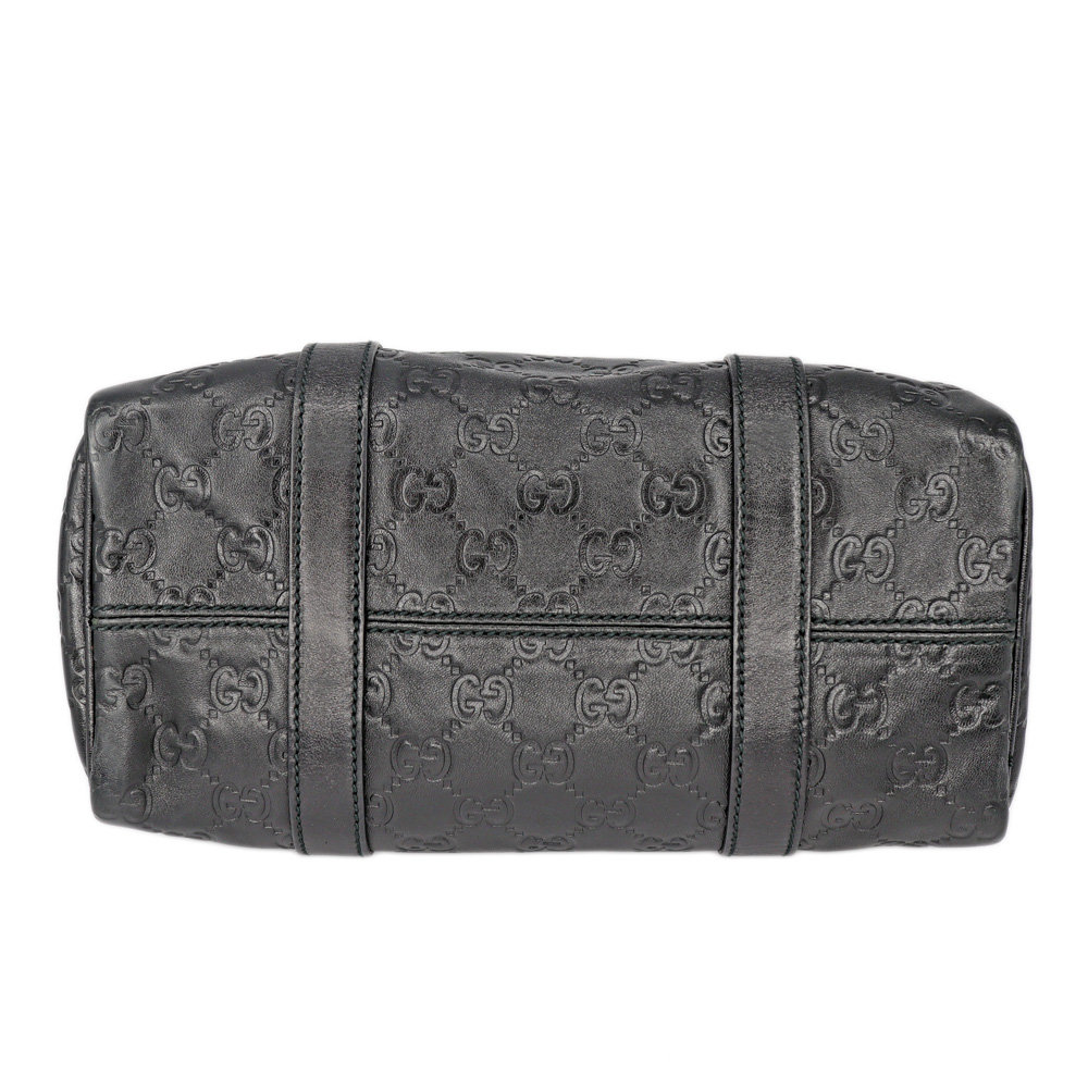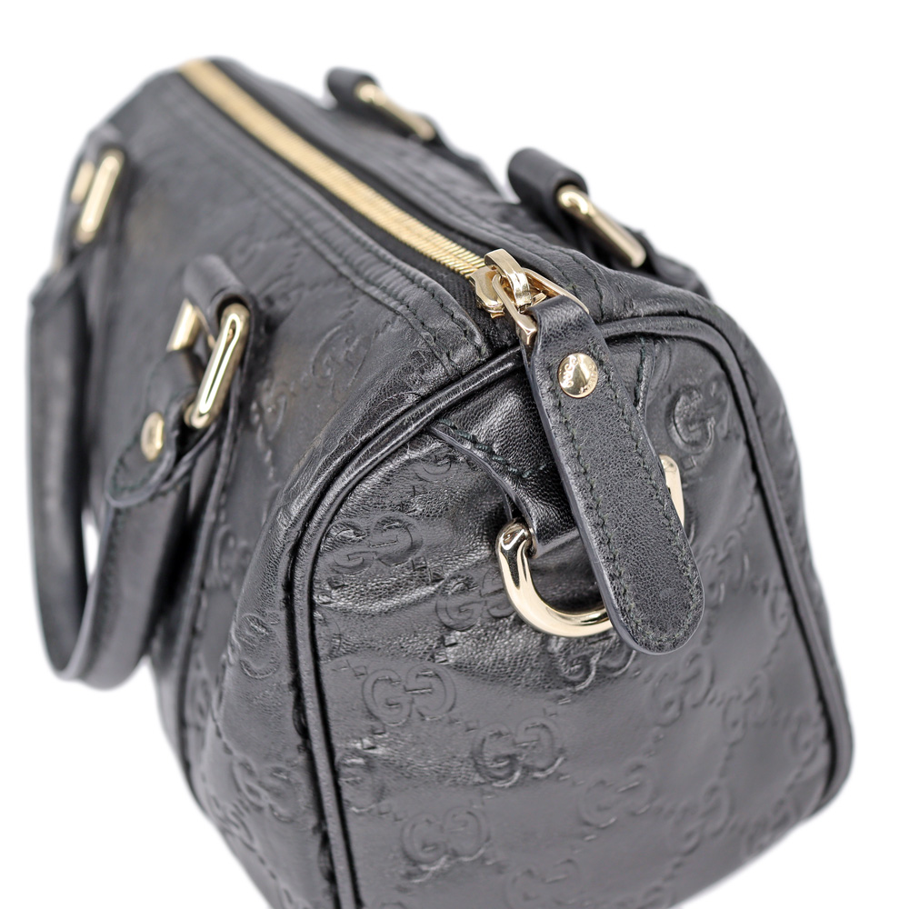 レザーにGG柄がエンボス加工されたミニボストンです。 小さめのハンドバッグですので普段使いにぴったりなお品。