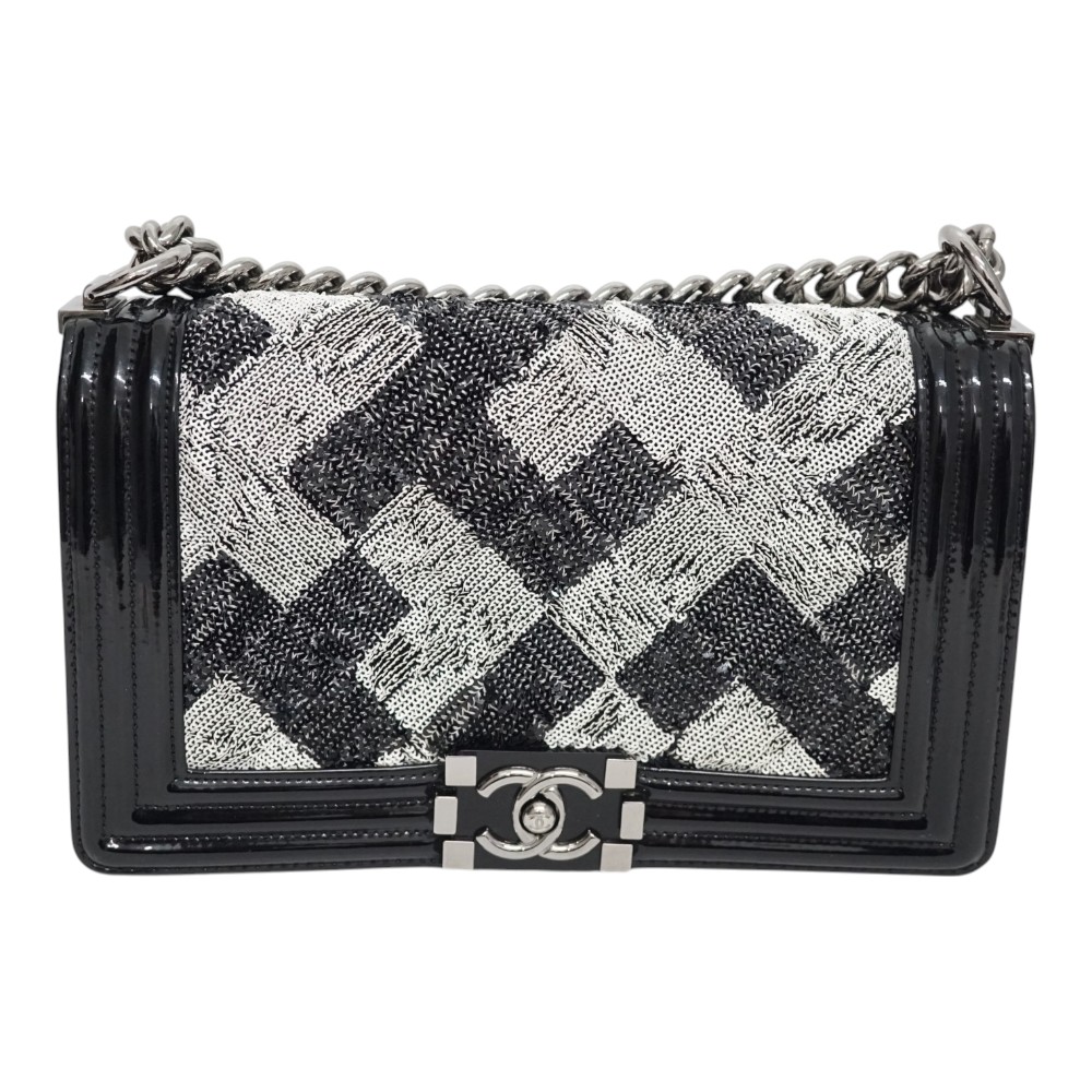 シャネル Chanel A67086 ボーイシャネル チェーンショルダー スパンコール エナメル スエード 【中古】