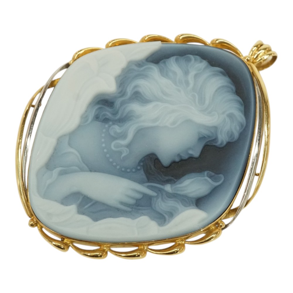K18 18金 イエローゴールドカメオブローチ ペンダントトップ【中古】