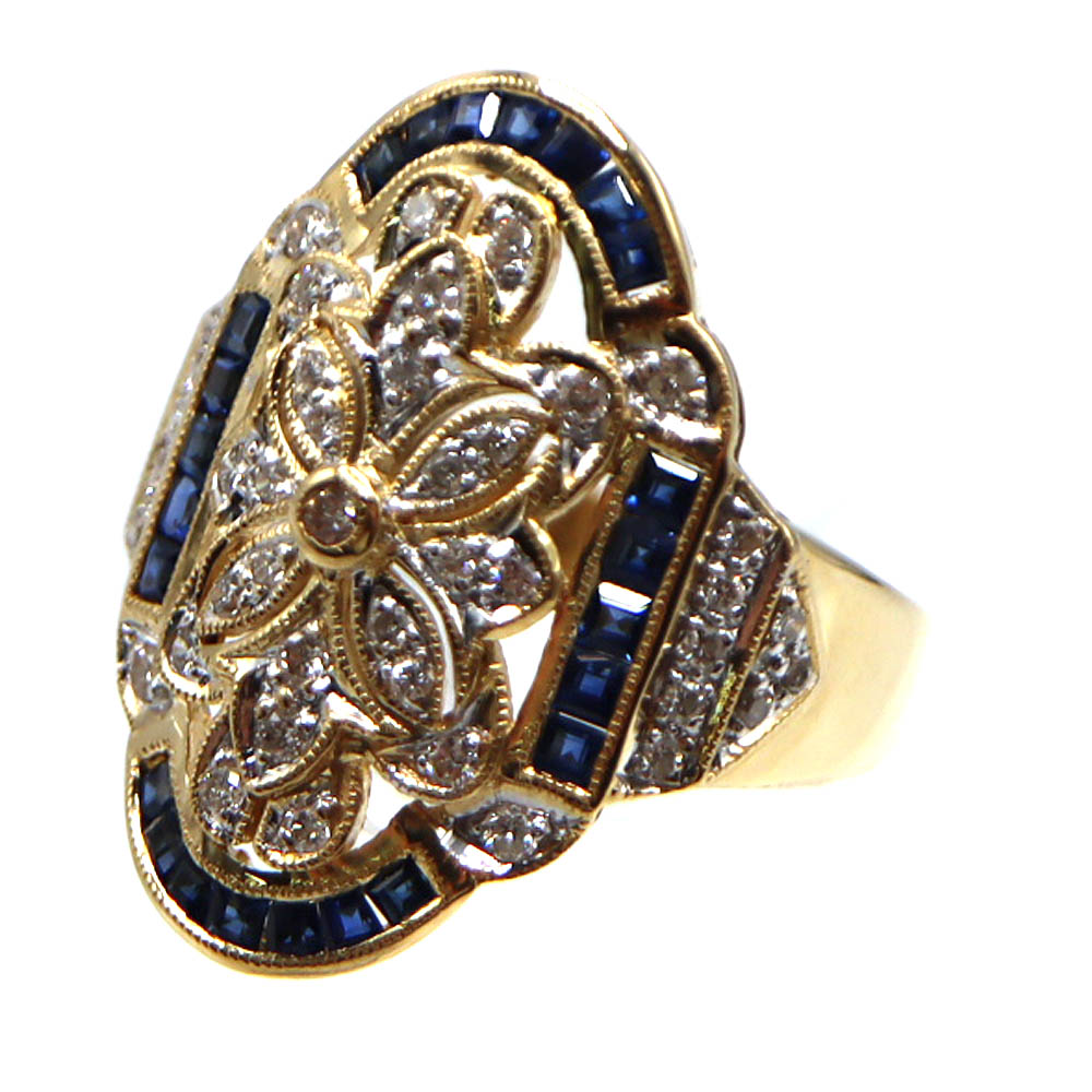 K18 18金 ブルーサファイア0.98ct ダイヤモンド0.43ct リング ゴールド 金 ブルーサファイア レディース リング 指輪【中古】