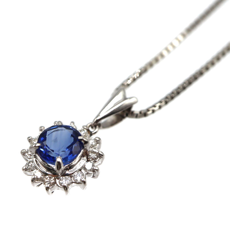 プラチナ850 Pt850 トップPt900 S0.89ct D0.15ct ネックレス プラチナ サファイア ダイヤモンド レディース ジュエリー 【中古】