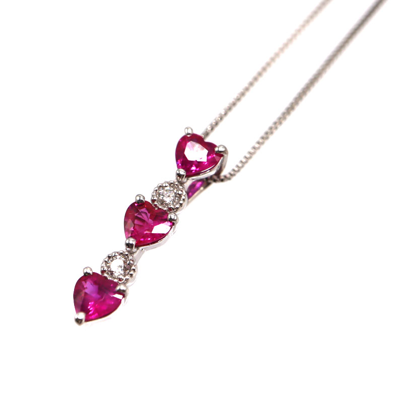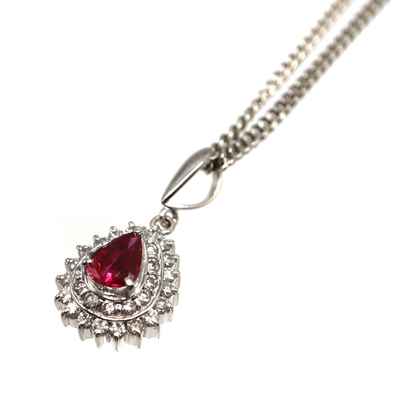 18金ホワイトゴールド K18WG R0.74/D0.05ct ネックレス ルビー ダイヤモンド ジュエリー レディース【中古】