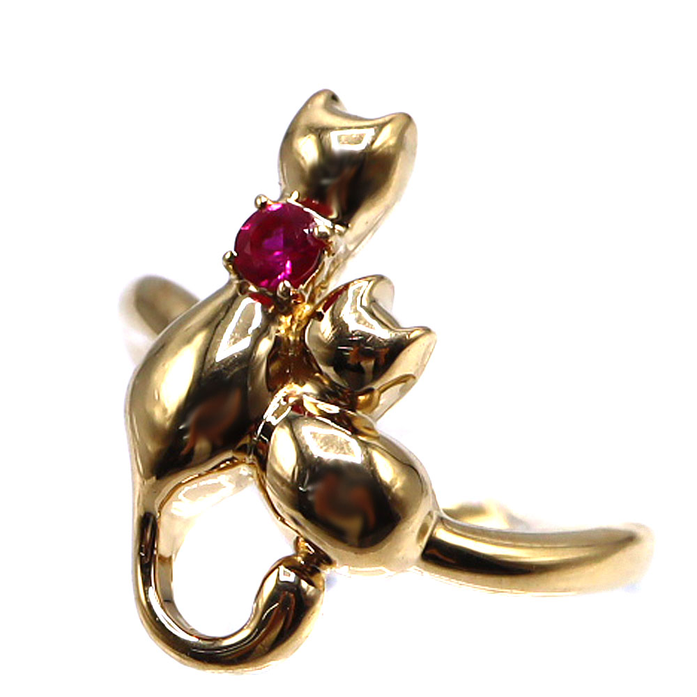 K18 18金 ルビー付ネコリング 指輪 ジュエリー レディース【中古】