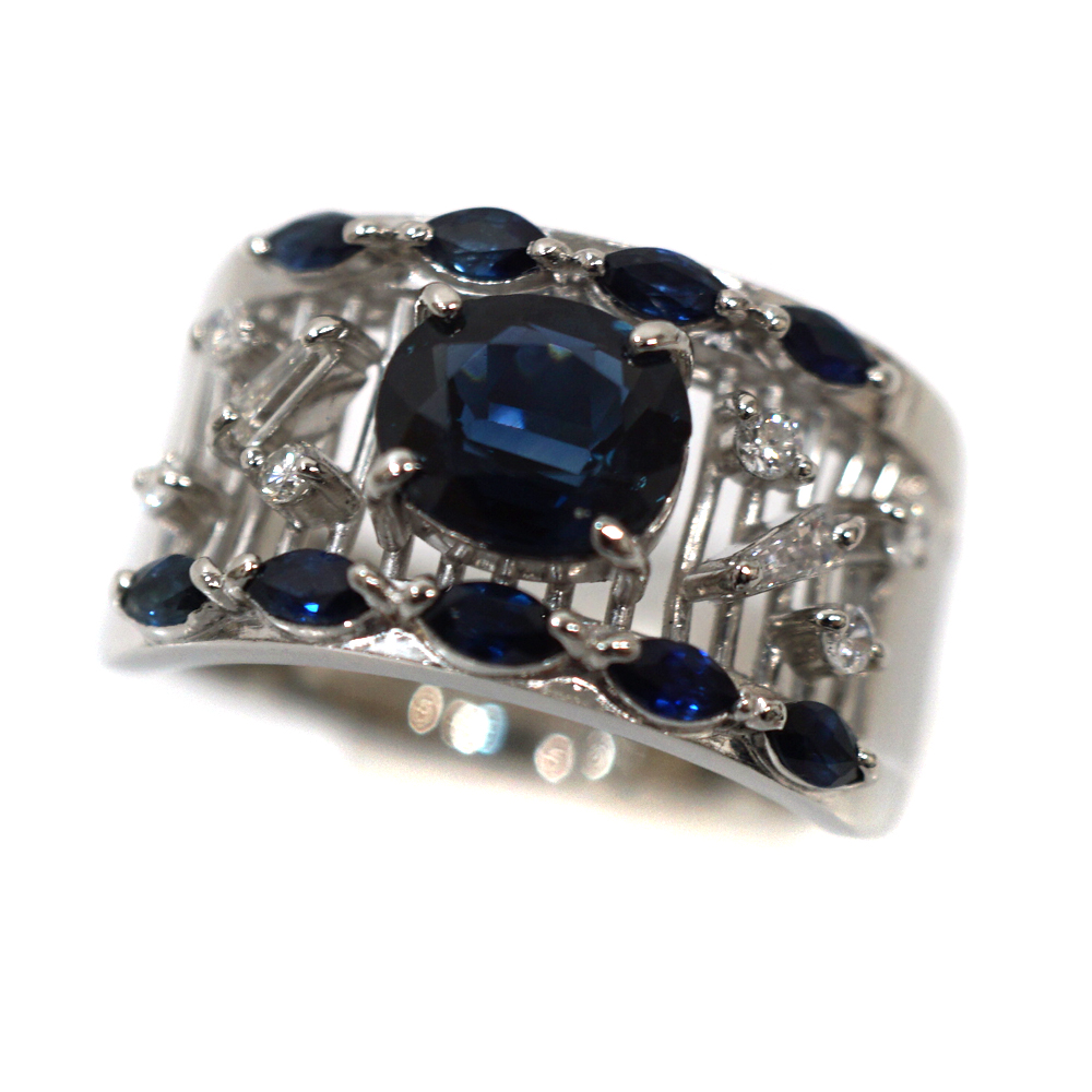 Pt900 D0.25ct S1.51ct サファイヤダイヤモンドリング メンズ ジュエリー アクセサリー 【中古】