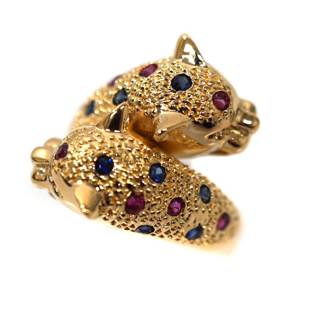 K18 R0.26ct S0.32ct パンサーリング 約11号 レディース ジュエリー アクセサリー ゴールド 指輪【中古】