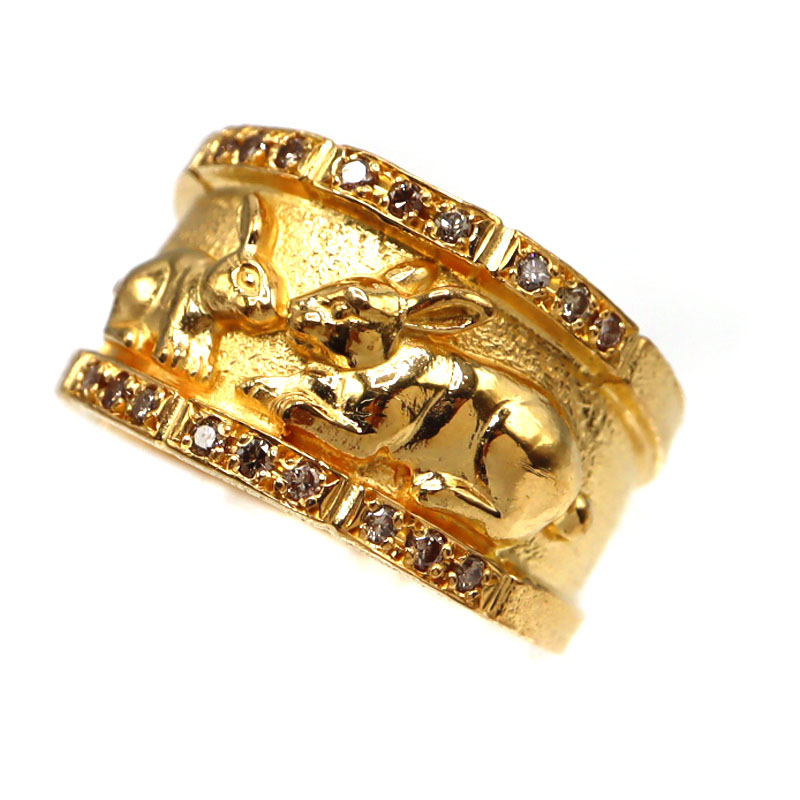 K22 22金 D0.18ct ラビットデザインリング 指輪 ダイヤモンド ジュエリー レディース 金 イエローゴールド【中古】