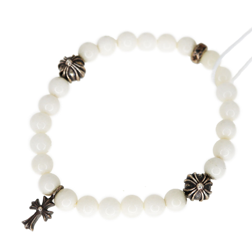 クロムハーツ CHROME HEARTS CHクロス ビーズブレスレッド ユニセックス SV925 ホワイト シルバー 【中古】