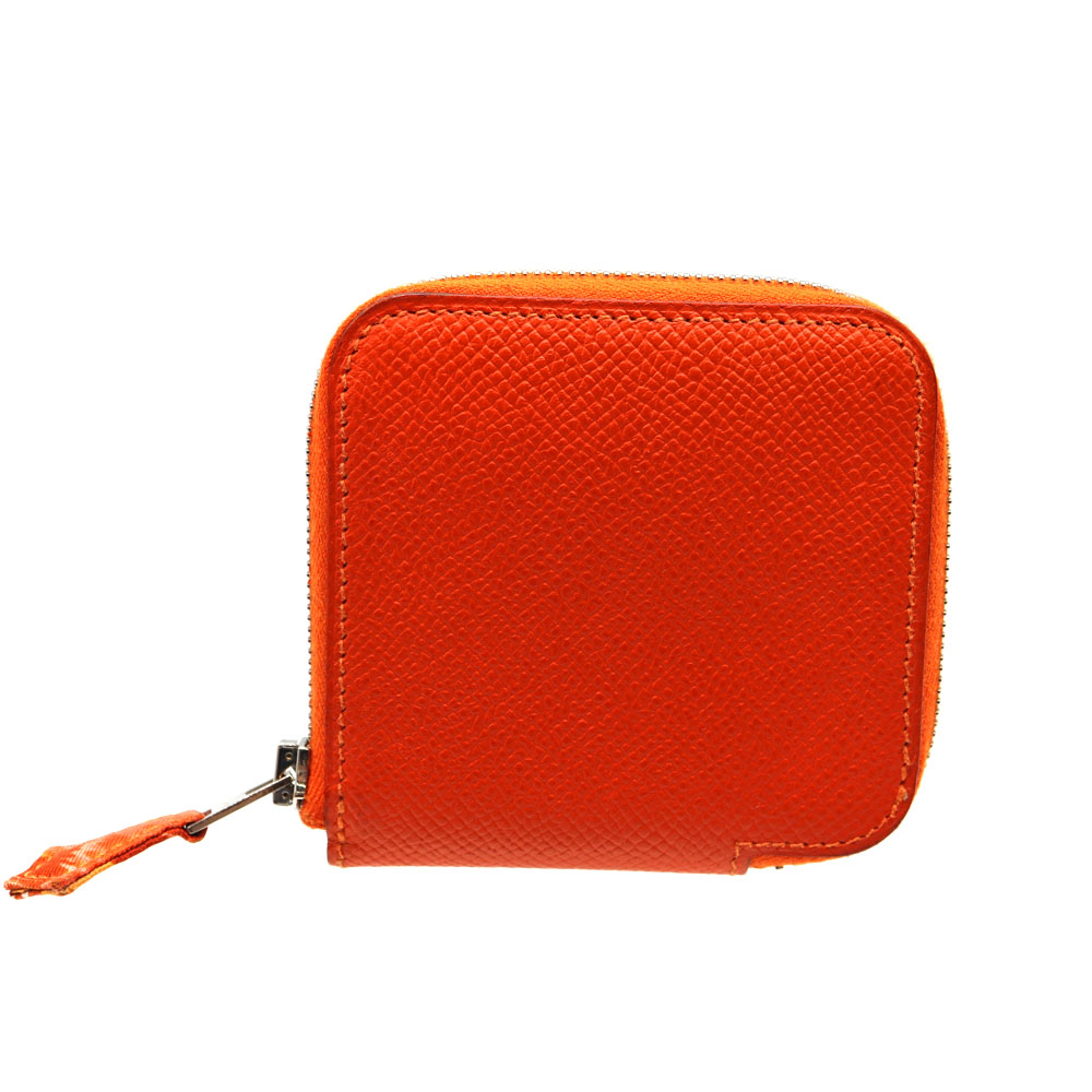 エルメス Hermes アザップミニ シルクイン エプソン レザー 財布 小銭入れ オレンジ □R刻印【中古】