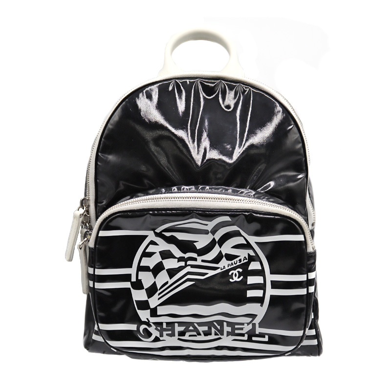 シャネル Chanel バックパック 2019年クルーズ LA PAUSA リュック ブラック ホワイト エナメル 鞄【中古】