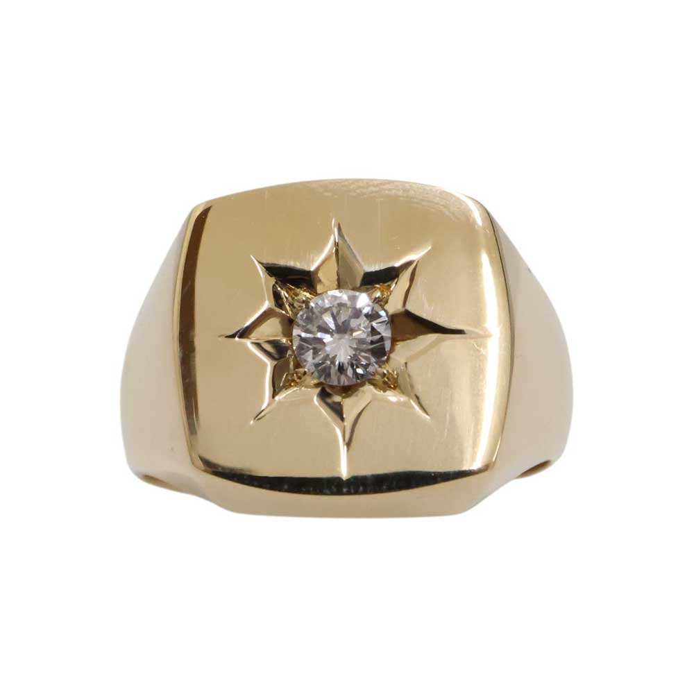 K18 18金 ダイヤモンド付 印台リング 指輪 メンズ ジュエリー イエローゴールド アクセサリー【中古】