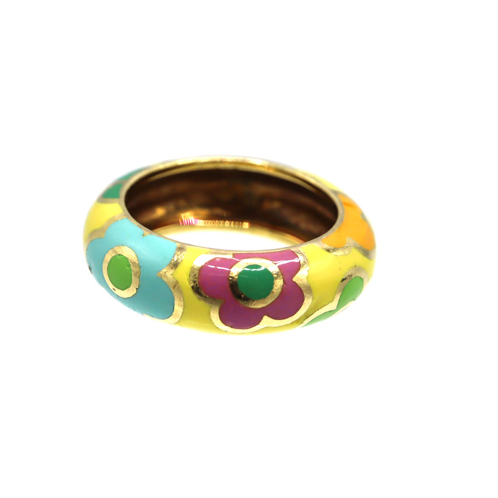 ポンテヴェキオ Ponte Vecchioフラワーモチーフリング 18金 K18 エナメル ゴールド 指輪 レディース 【中古】