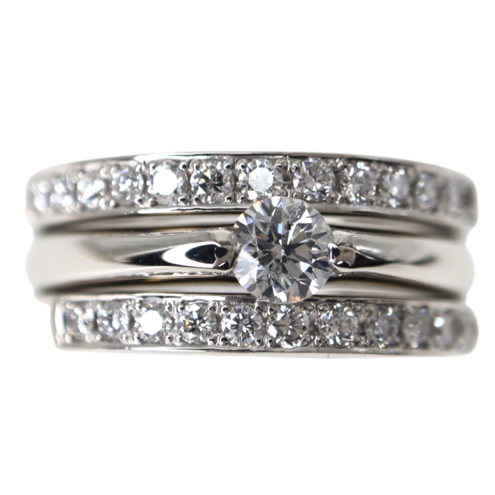 Pt900 プラチナ900 ダイヤモンド 3連 リング レディース 【中古】
