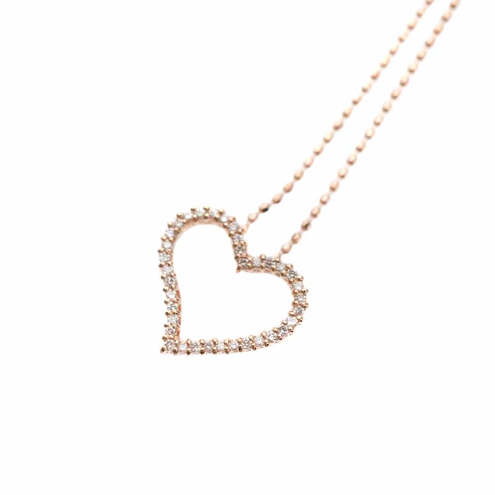 K18PG 18金ピンクゴールド ネックレス ダイヤモンド0.15ct アクセサリー ハート【中古】