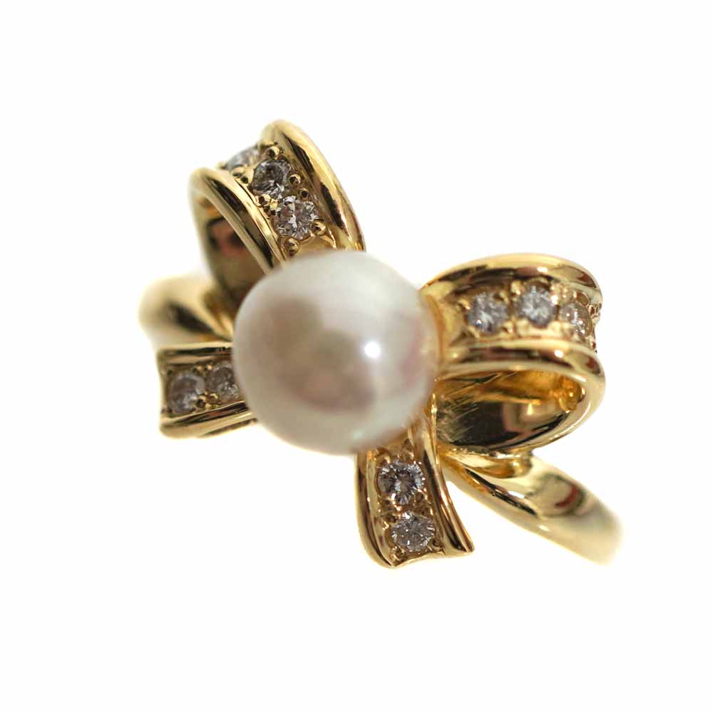 K18YG K18WG イエローゴールド リング 指輪 パール ダイヤモンド0.14ct【中古】