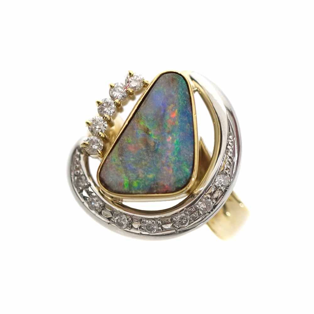 K18YG 18金 イエローゴールド リング 指輪 ボルダーオパール3.18ct ダイヤモンド0.31ct【中古】