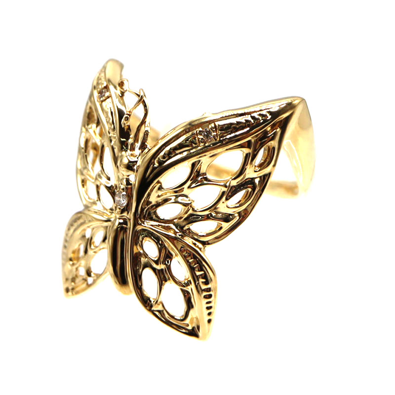 K18 18金 D0.02ctバタフライモチーフリング ダイヤモンド 指輪 ジュエリー レディース【中古】