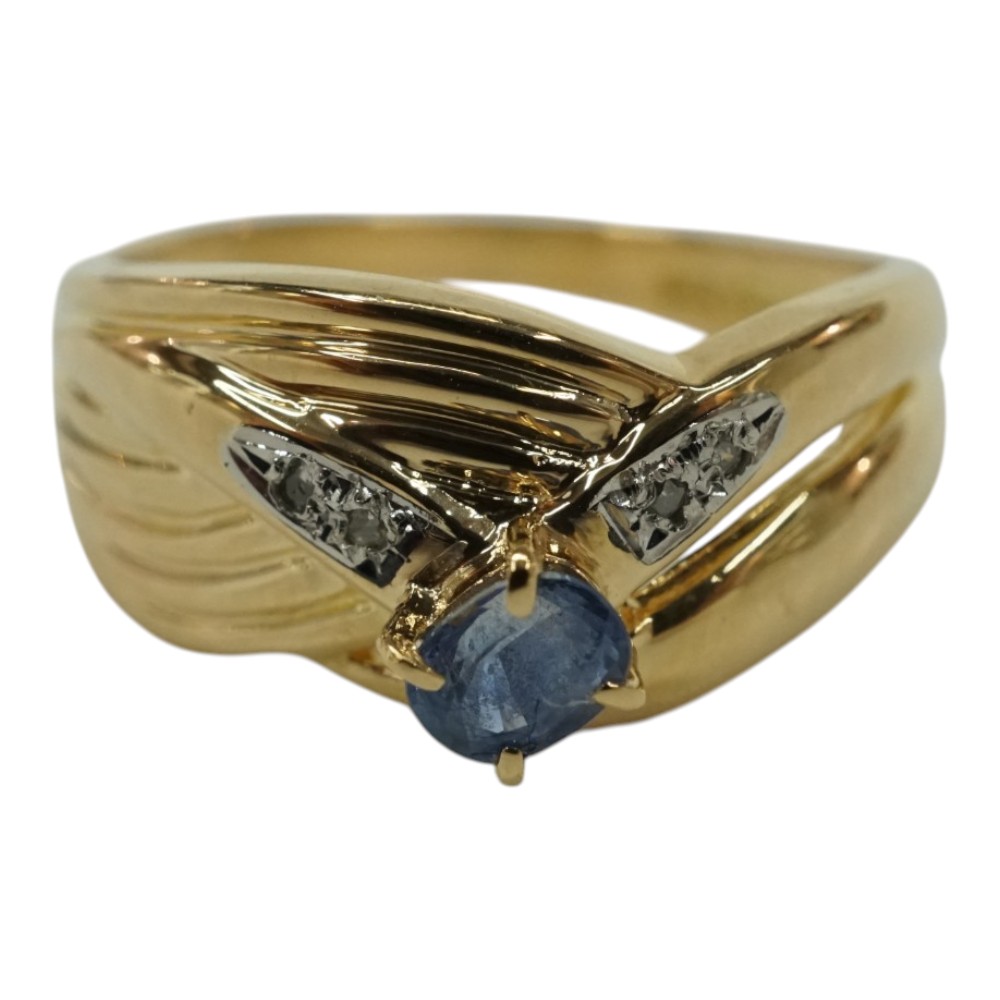 K18 ゴールド ダイヤモンド0.03c サファイア0.25ct リング 指輪【中古】