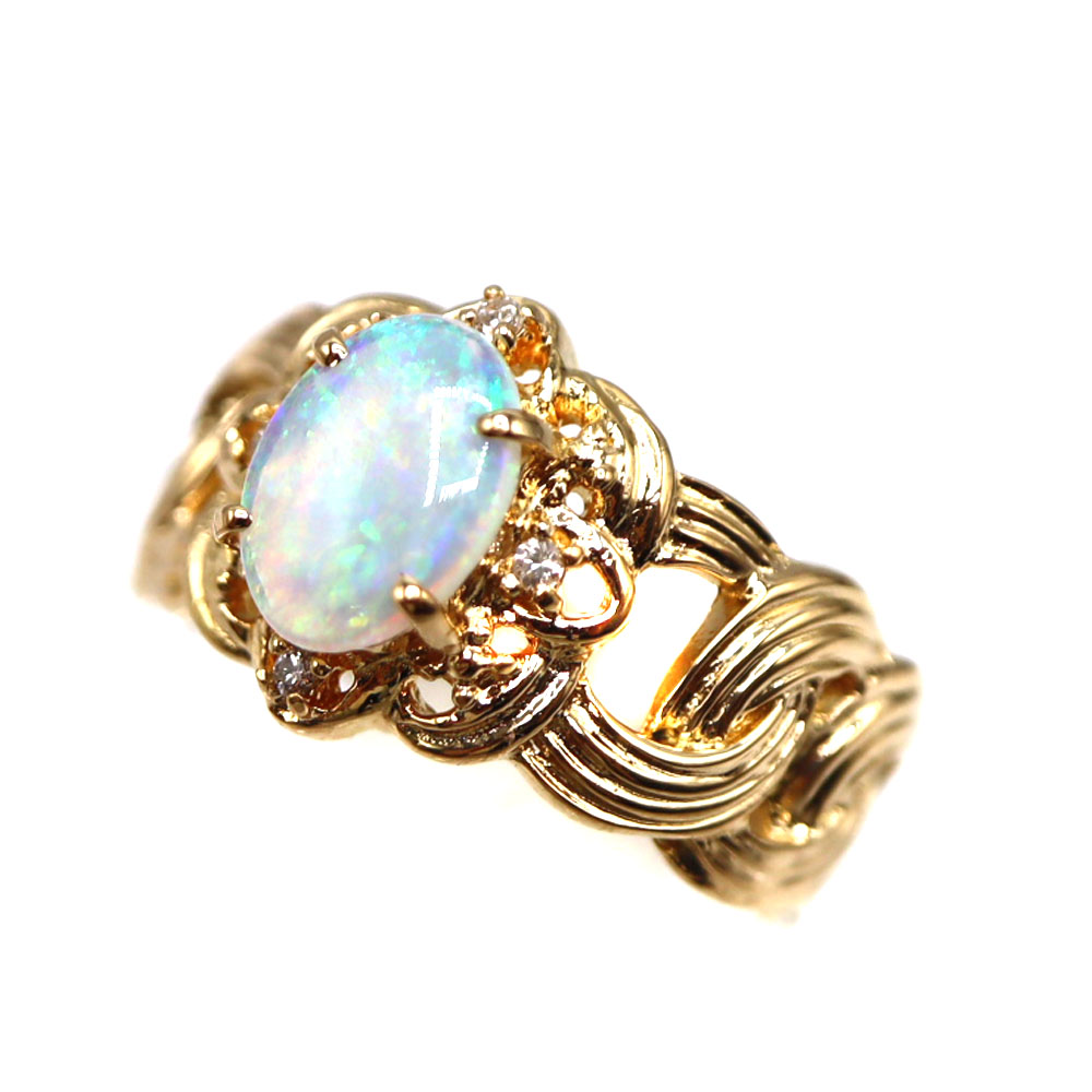 K18 18金 オパール0.54/ダイヤモンド0.03ctリング 指輪 ゴールド レディース オパール ジュエリー 【中古】