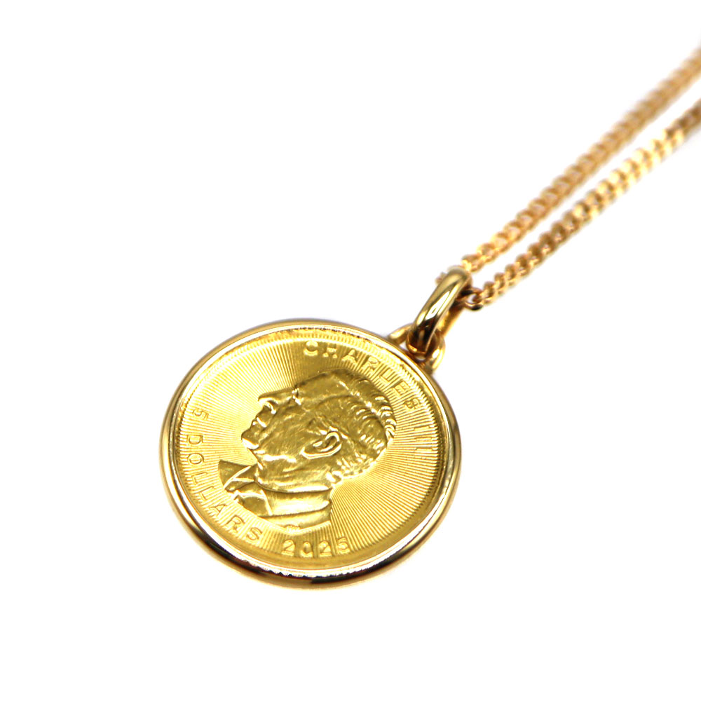 K18 18金 K24 24金 1/10ozコイン付ネックレス ユニセックス 【中古】