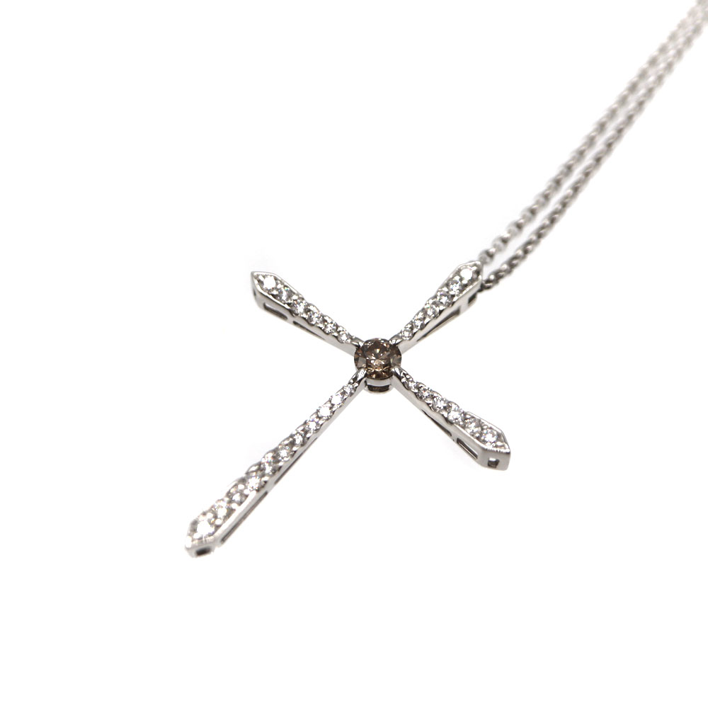 Pt850 Pt900 プラチナ ダイヤモンド D0.40/0.70ct クロストップ付ネックレス ジュエリー レディース【中古】