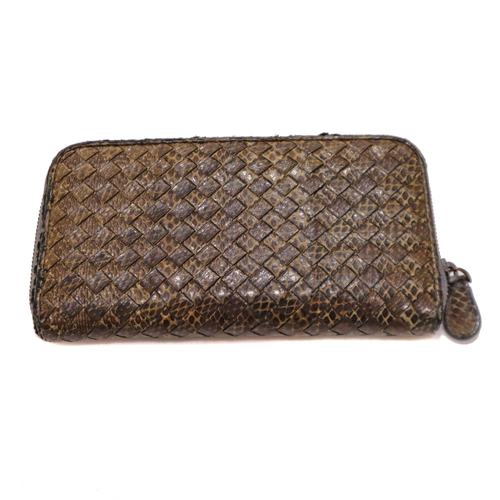 ボッテガヴェネタ Bottega Veneta ラウンドファスナー長財布 イントレチャート パイソン【中古】