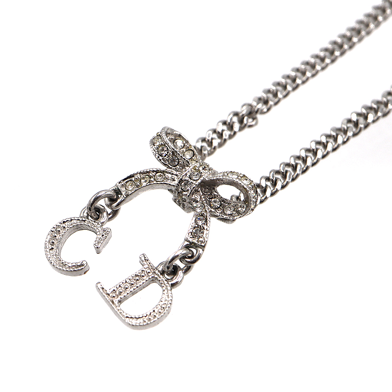 ディオール Dior ロゴリボンネックレス 金属素材 シルバー レディース【中古】