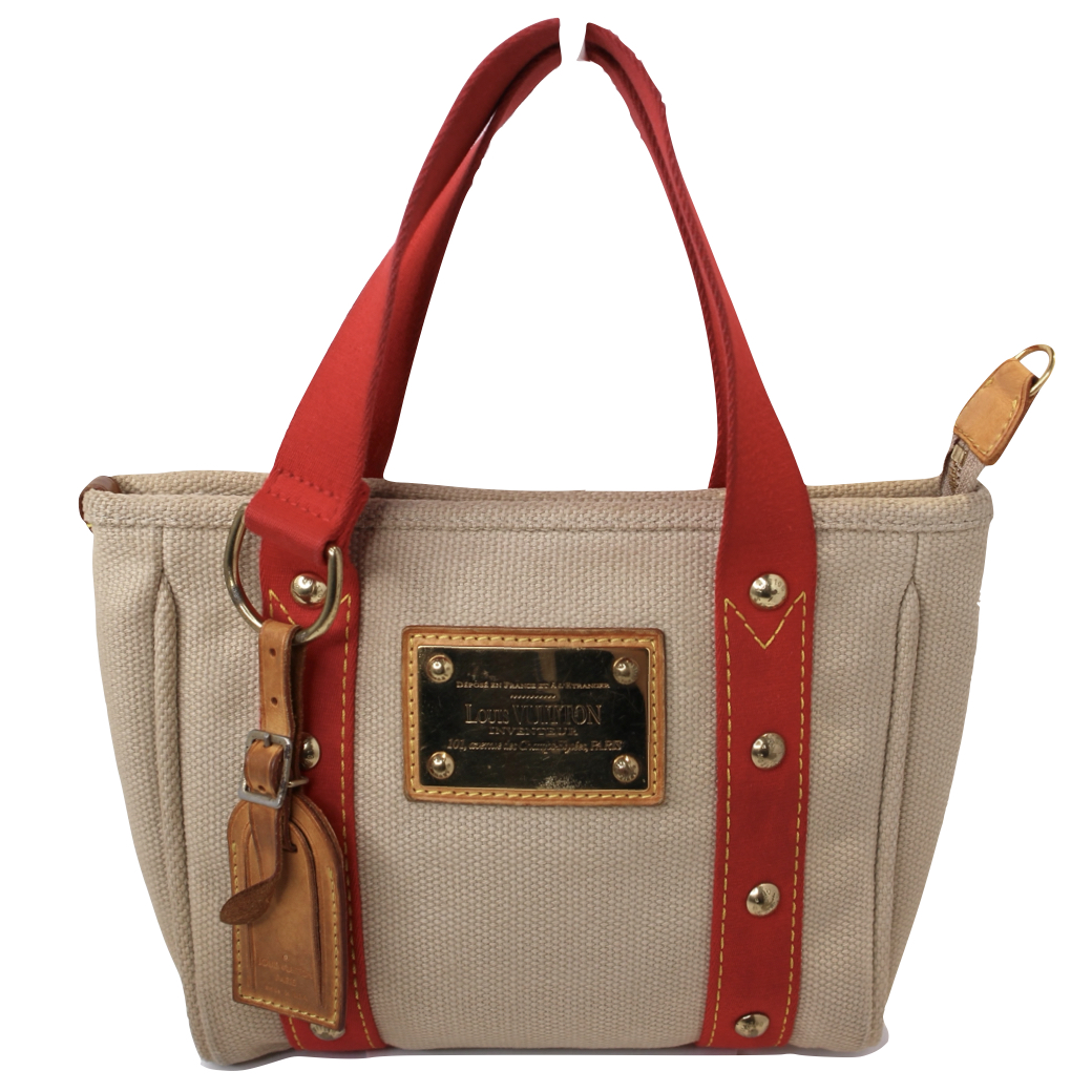 【LOUIS VUITTON】ルイヴィトン M40038 カバPM トートバッグ コットンキャンバス ベージュ×レッド【中古】
