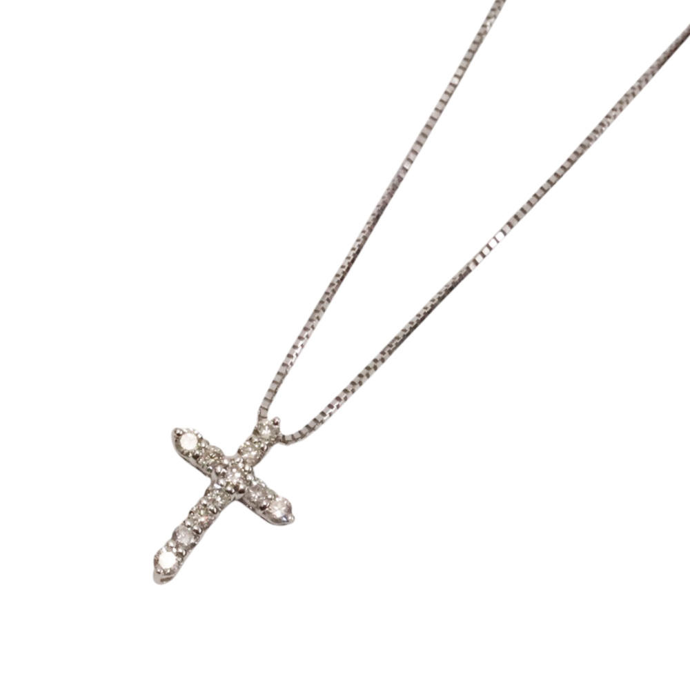 K10WG 10金ホワイトゴールド ダイヤモンド ネックレス【中古】