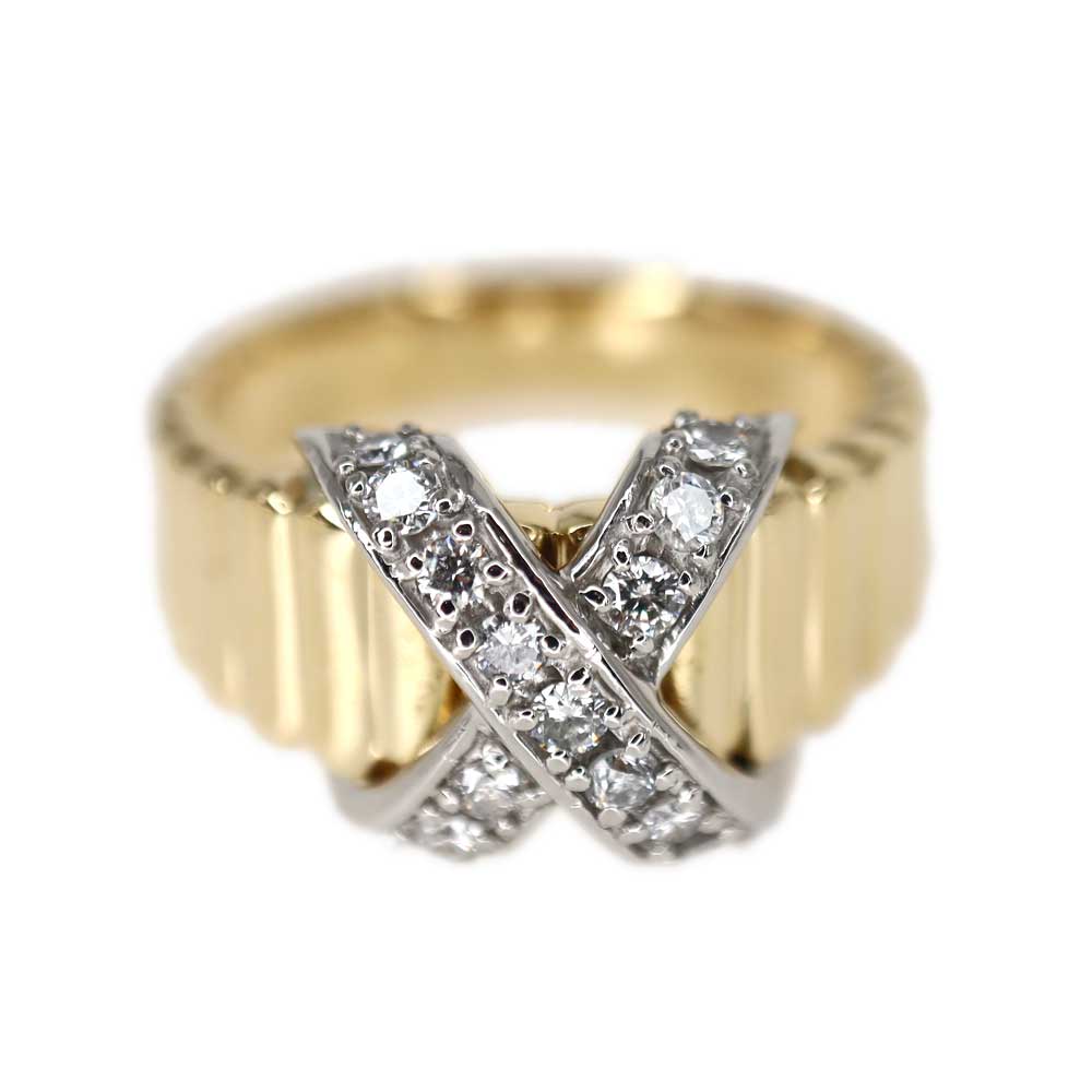 K18 Pt900 18金 プラチナ ダイヤモンド リング レディース ゴールド シルバー 【中古】