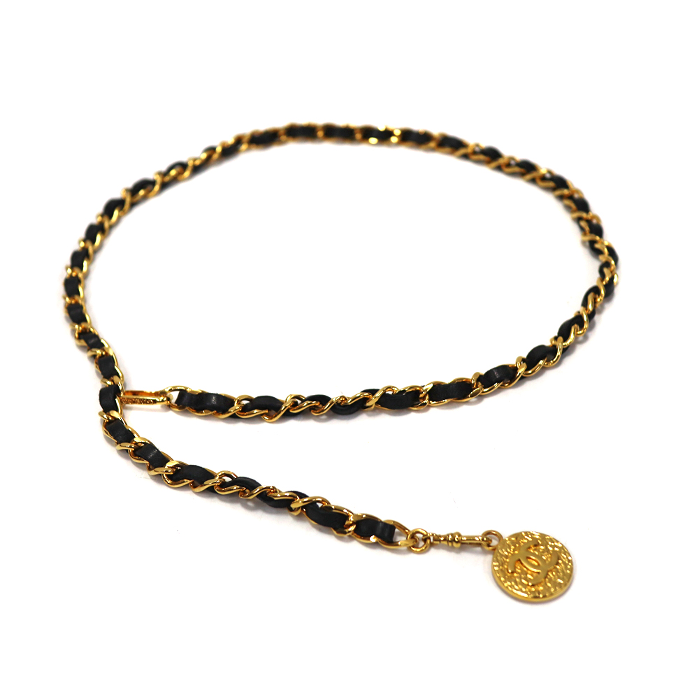 シャネル Chanel 1982 ココマーク チェーンベルト レザー レディース ブラック ゴールド【中古】