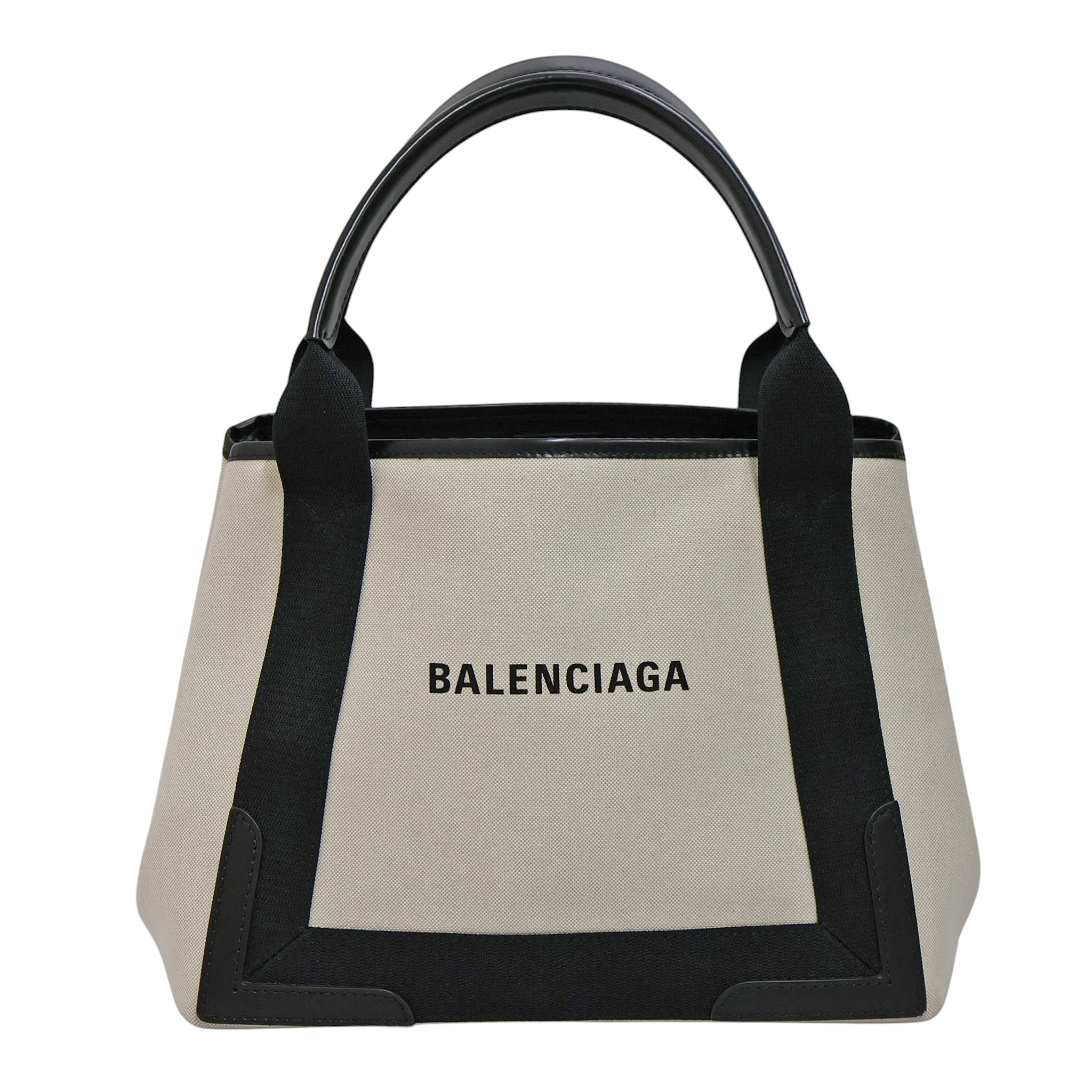 バレンシアガ Balenciaga 339933 ネイビーカバスS ハンドバッグ レディース キャンバス×レザー ブラック×ホワイト系【中古】