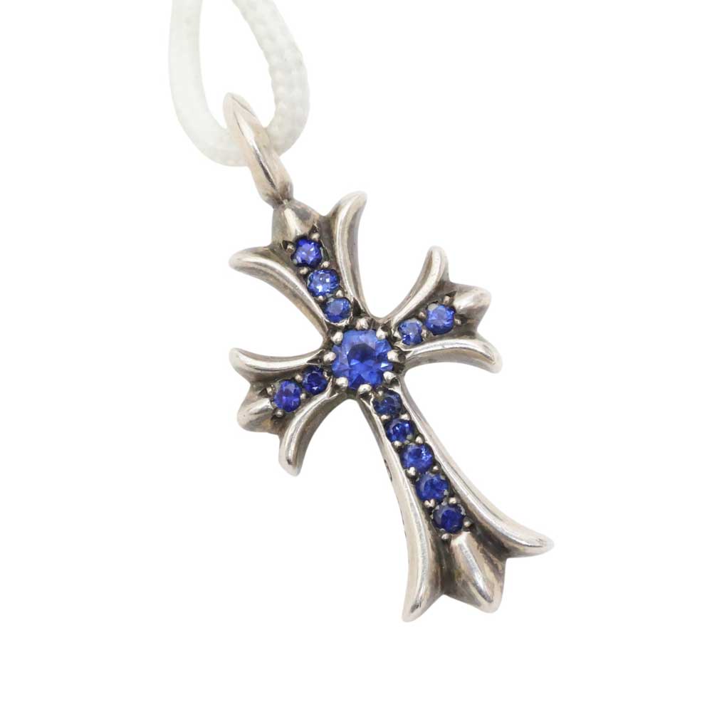 クロムハーツ Chrome Hearts タイニークロスチャーム パヴェサファイア ペンダントトップ SV925 シルバー メンズ レディース【中古】