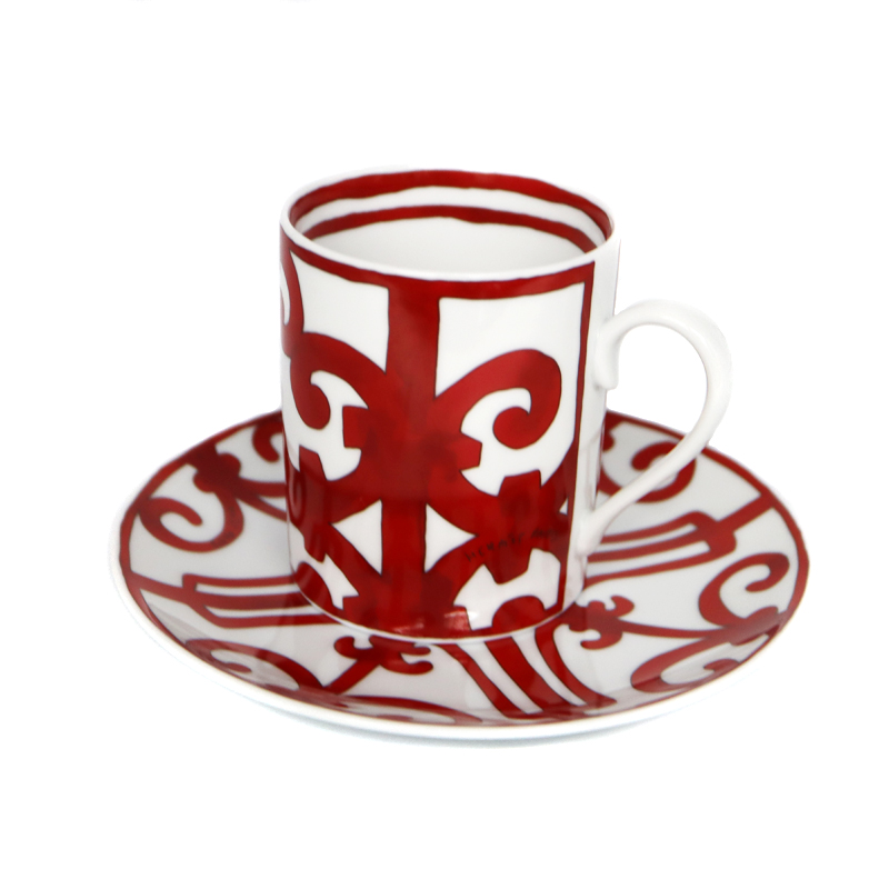 エルメス Hermes マグカップ&プレートセット カップ&ソーサー ガダルキヴィール 陶器 ホワイト レッド【中古】